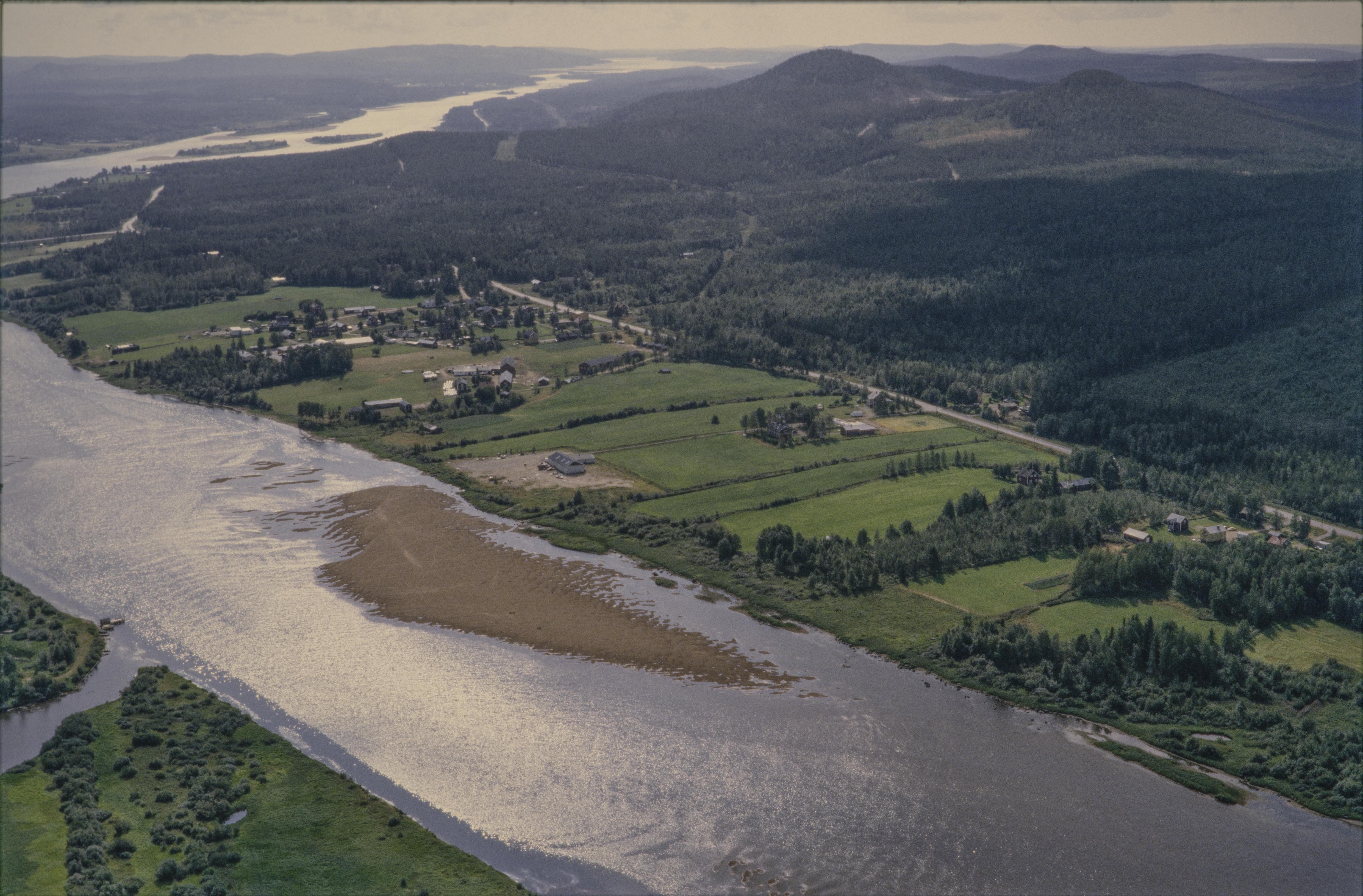 Beskrivning: Ängesåns dalgång. Hedensbyn i bildens högra del. Till vänster över bildens mitt bytomt RAÄnr Överkalix 631:1. Kalixälven i bildens övre del. Bilden är tagen mot (väderstreck): S