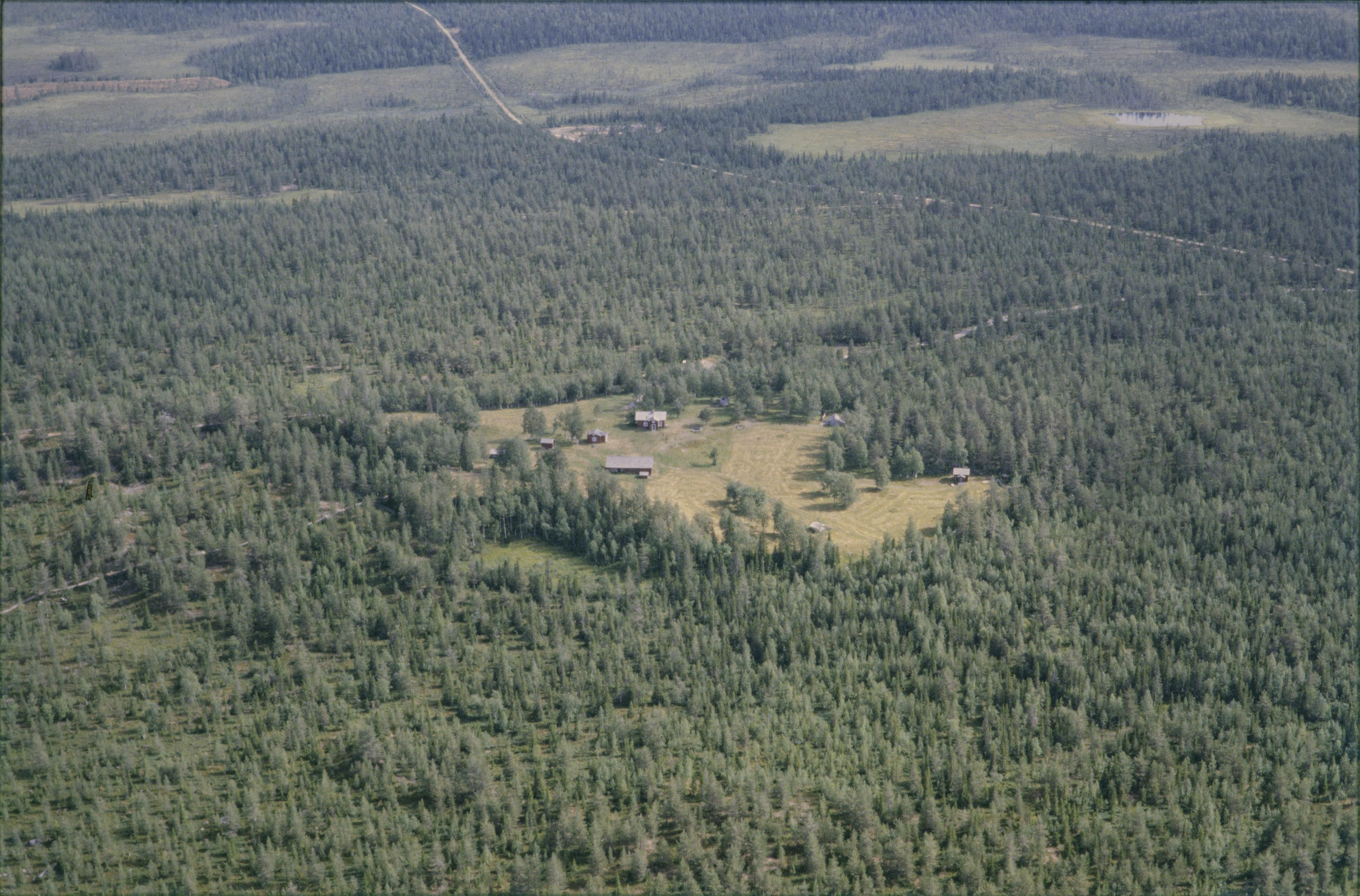 Beskrivning: Rikti-Dockas, ett ensamliggande, skogssamiskt nybygge från 1800-talet. I området begravningsplats / sommargravar RAÄnr Överkalix 73:1-4. Bilden är tagen mot (väderstreck): Ö