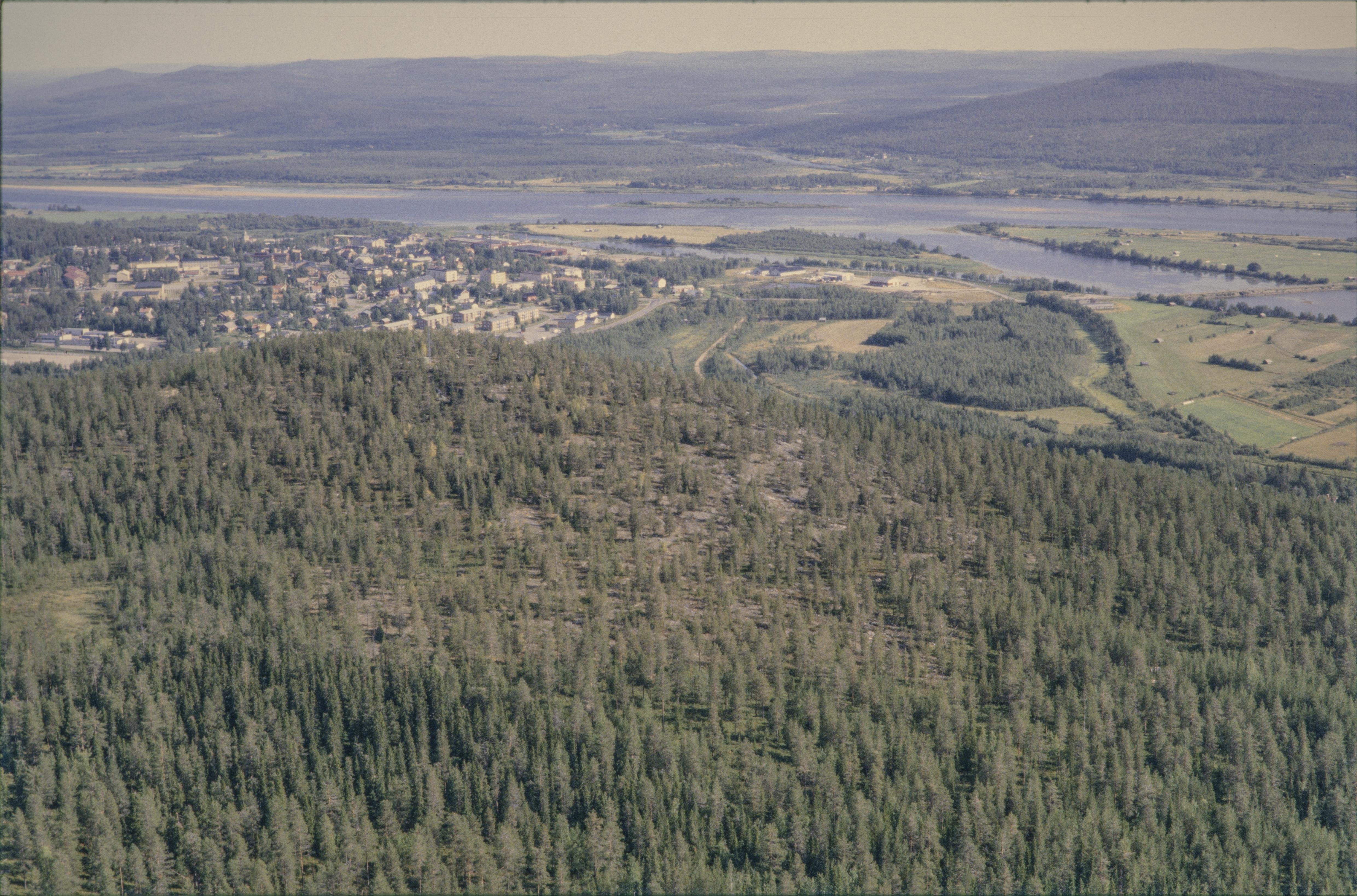 Beskrivning: Militärområdet Isovaara sydväst om tätorten Övertorneå i Tornedalen. Försvarsanläggningar RAÄnr Övertorneå 129:1 vid bildens mitt. Isovaara naturreservat i bildens nedre del. I bildens övre del Torneälven och riksgränsen mot Finland. (I bilden även riksintresset BD15b - Tornedalen.) Bilden är tagen mot (väderstreck): ONO