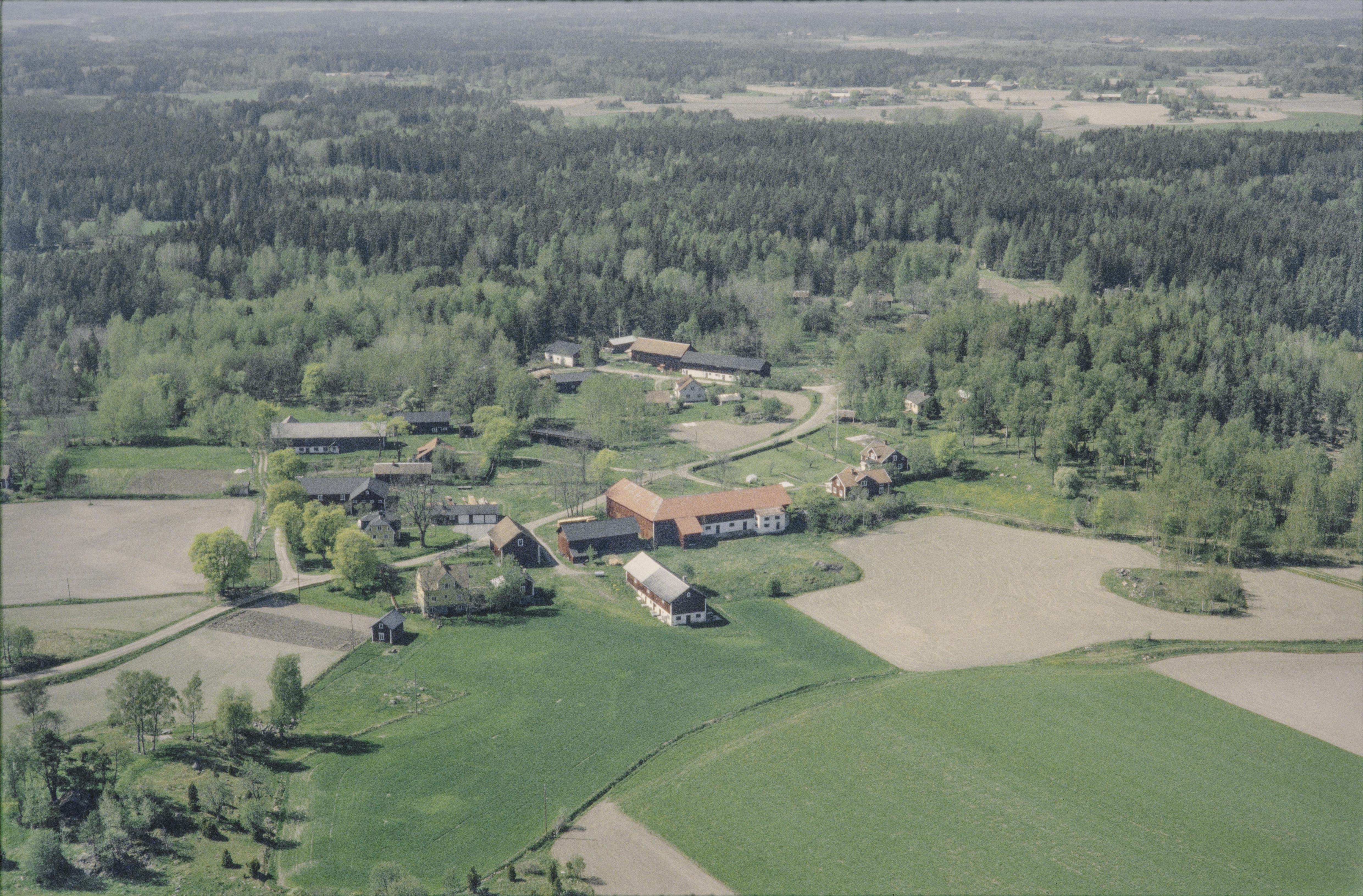 Beskrivning: Gela by i Olandsån dalgång. I bildens nedre kant stensättningar RAÄnr Alunda 301:1-2 m.fl. Bilden är tagen mot (väderstreck): NV