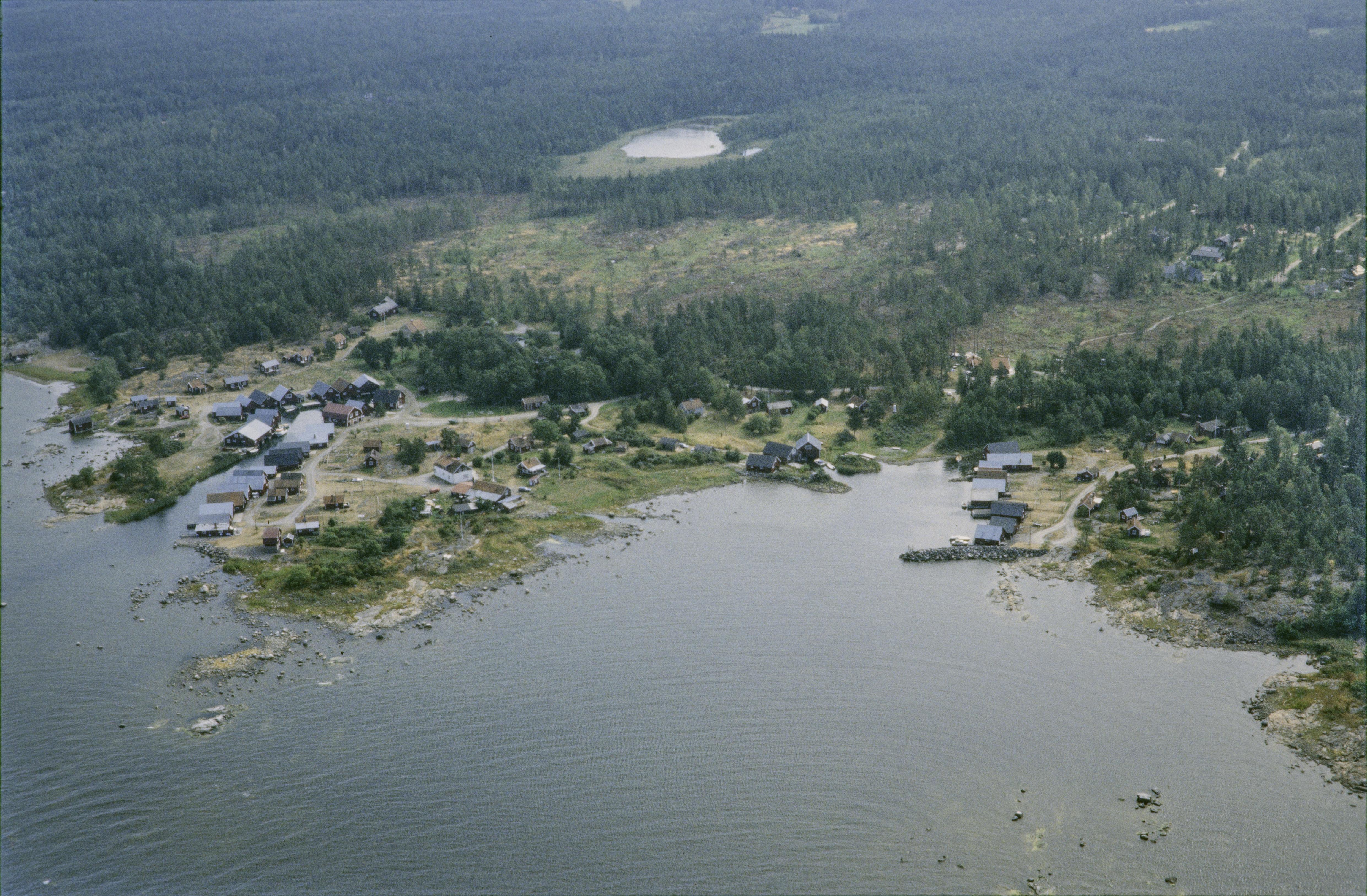 Beskrivning: Björns skärgård och naturreservat. Fågelsundets fiskelägen RAÄnr Hållnäs 242 till vänster och 243 + 248 till höger. Över bildens mitt begravningsplats RAÄnr Hållnäs 115:1. Bilden är tagen mot (väderstreck): SO