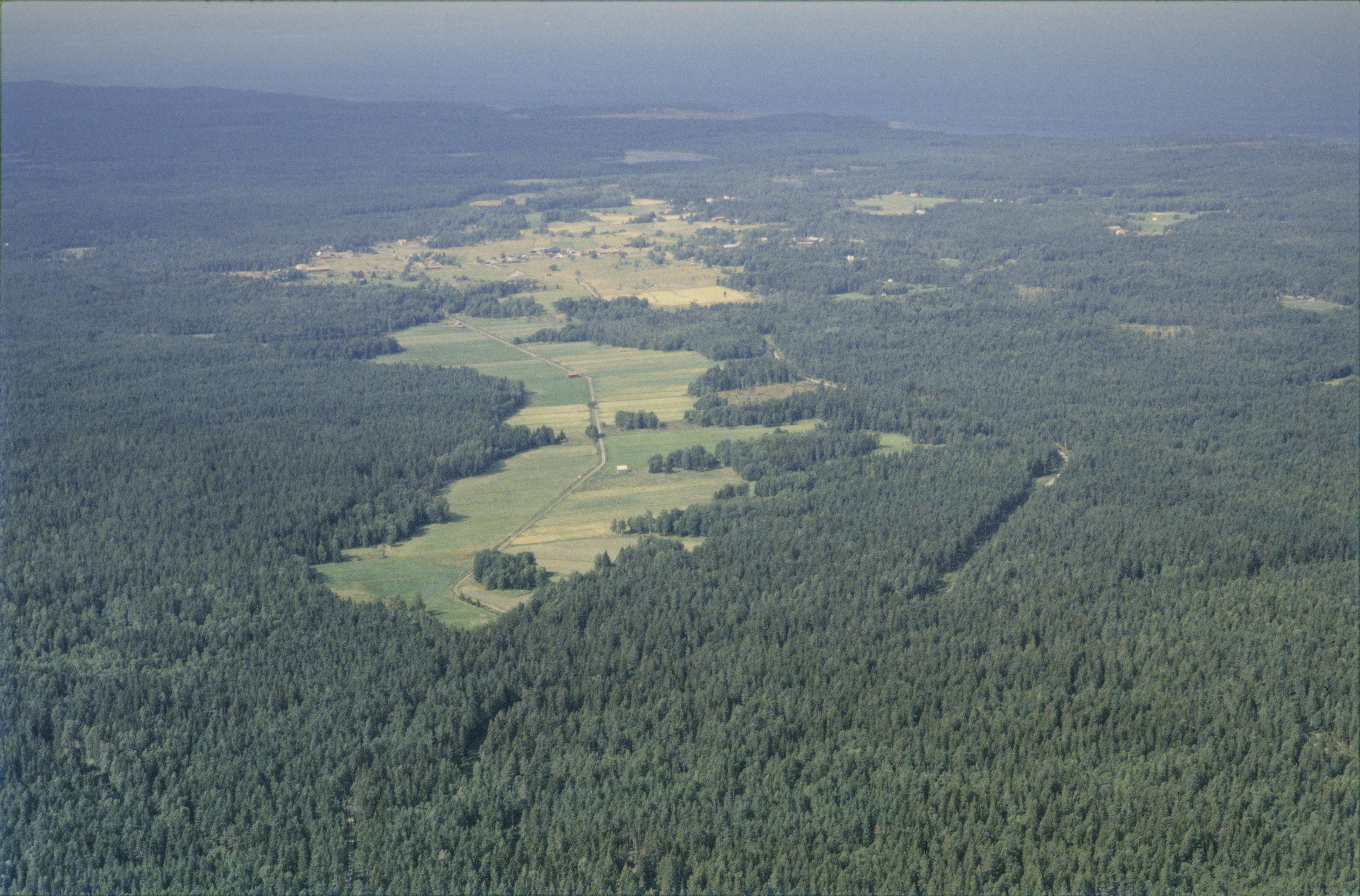 Beskrivning: Österrönningens dalgång. Över bildens mitt Hållens by i bytomt RAÄnr Hållnäs 280. Till höger i bildens övre del Björns skärgårds naturreservat. Bilden är tagen mot (väderstreck): NV