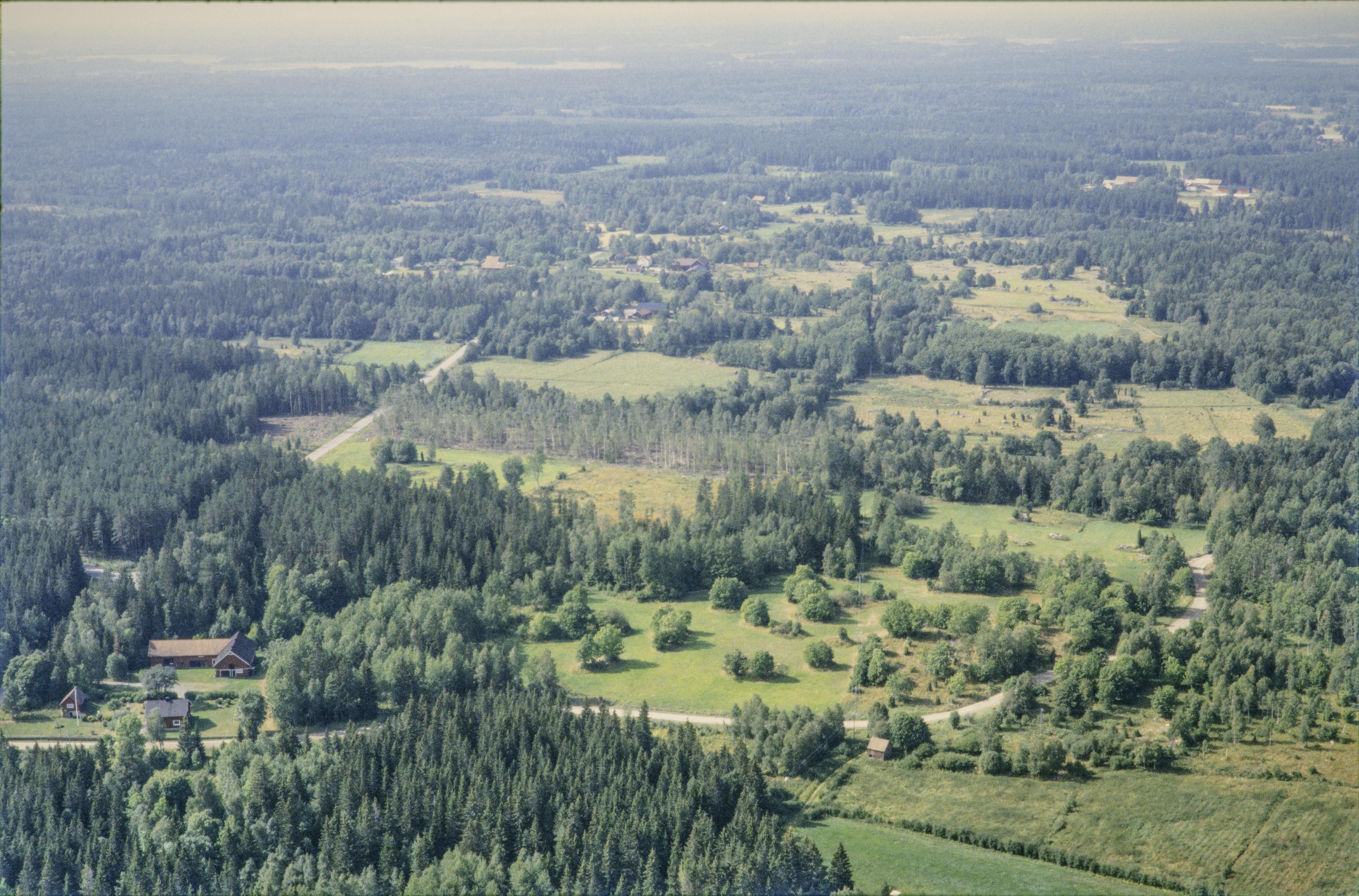 Beskrivning: Lingnåre kulturreservat. Vid bildens mitt boplats RAÄnr Hållnäs 173, gravfält med runristning Hållnäs 121:1 och 122:1, fossila åkrar Hållnäs 171, 176, 429 m.fl. Bilden är tagen mot (väderstreck): SV