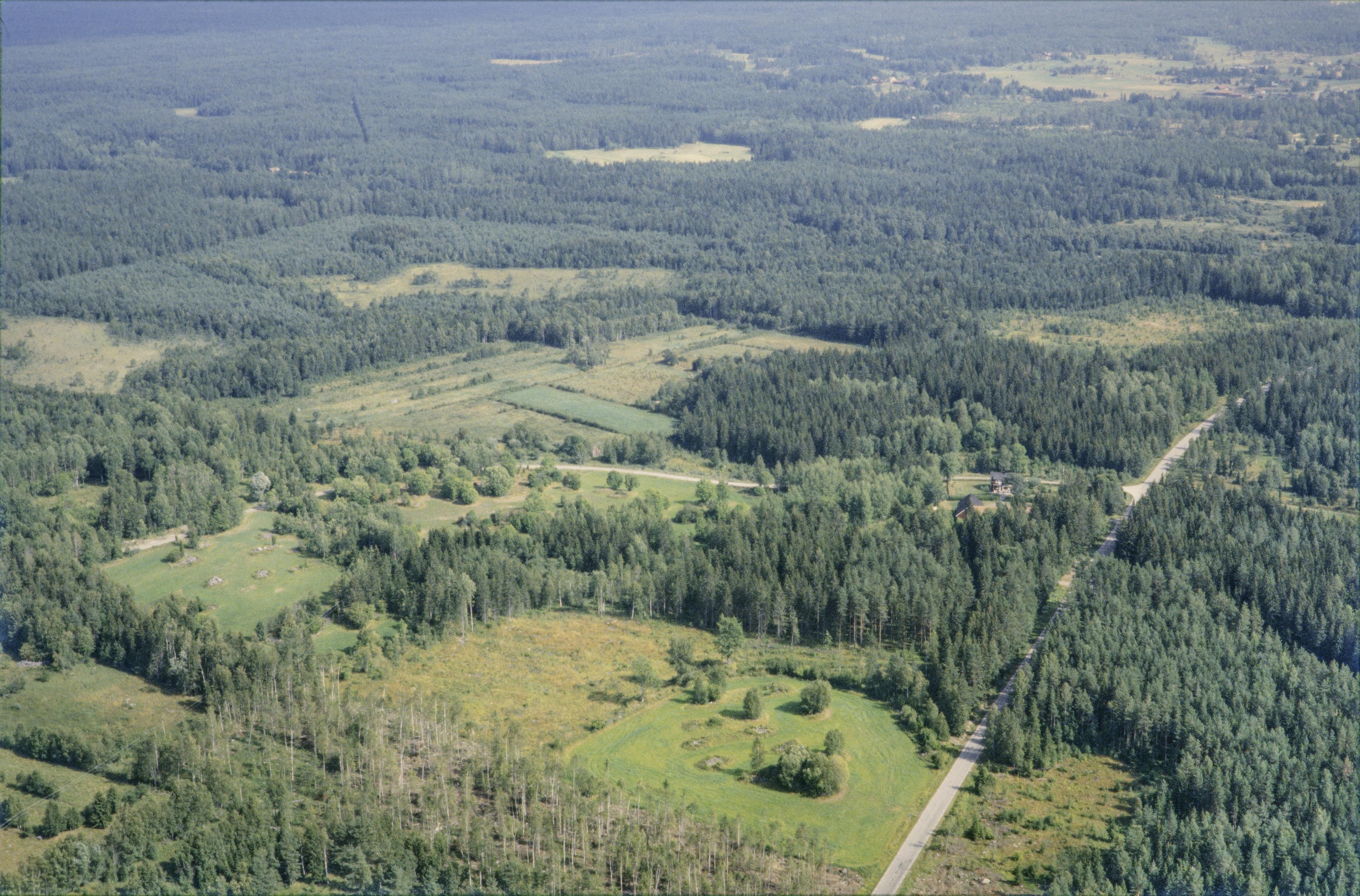Beskrivning: Lingnåre kulturreservat. Vid bildens mitt boplats RAÄnr Hållnäs 173, gravfält med runristning Hållnäs 121:1 och 122:1, fossila åkrar Hållnäs 171, 176, 429 m.fl. Bilden är tagen mot (väderstreck): NO
