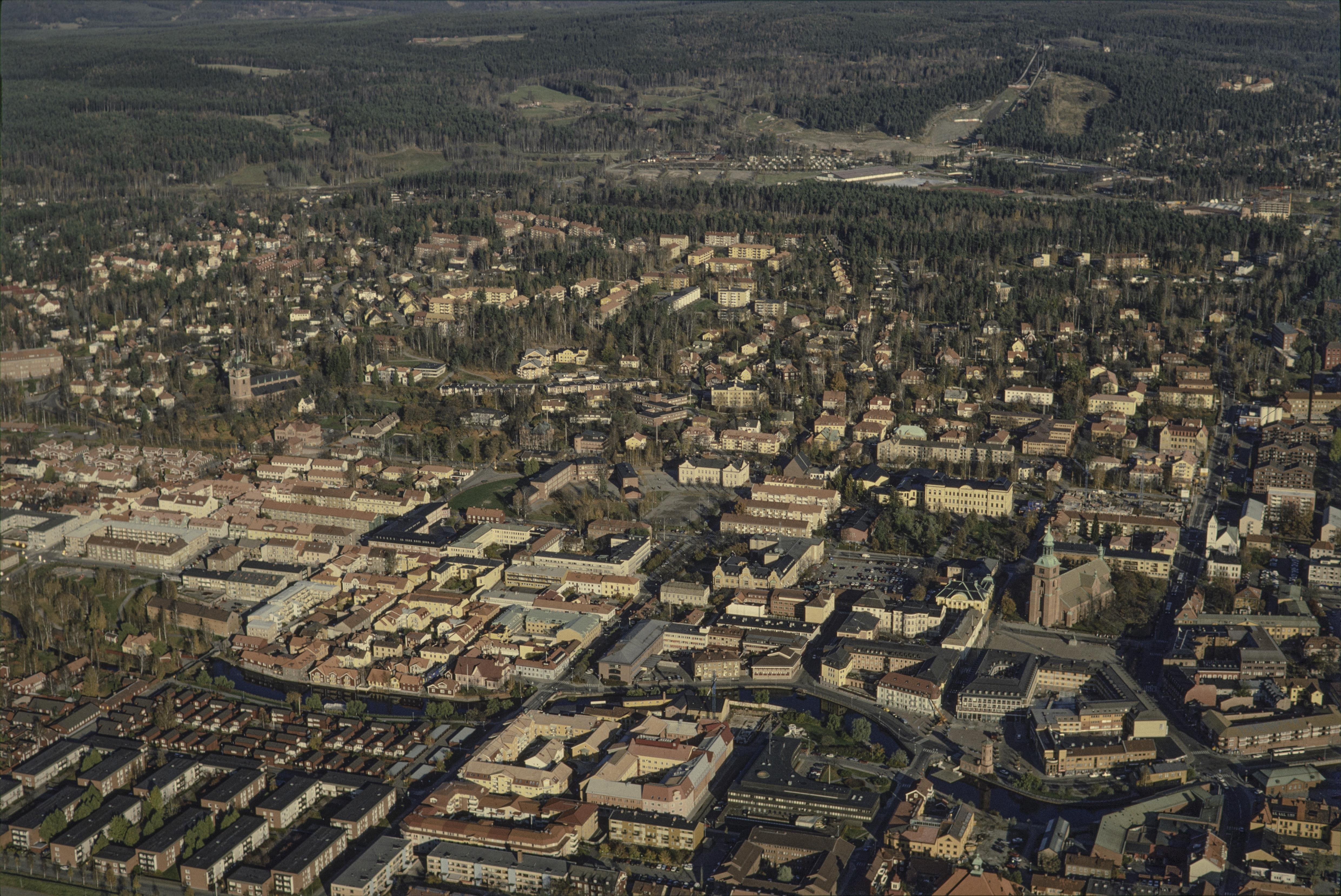 Beskrivning: Anmärkning (övrig): Riksintresse-nr/namn: W15 - Falun. Socken: Falu stad och Stora Kopparberg. Motivering: Industri- och stadsmiljö som speglar en nära tusenårig industriell tradition, kring Sveriges viktigaste tidigindustriella koppargruva som hade avgörande ekonomisk betydelse under landets stormaktstid, jämte tillhörande hyttområden samt residensstadens utveckling under 1800-talets slut och 1900-talets början. (Gruvmiljö, Tidigindustriell miljö). - Uttryck för riksintresset: Området kring gruvan med spår av en medeltida kolonisation och småskaligt jordbruk, dominerande bergsmansgårdar, storslagna slaggvarpar och hyttlämningar samt den medeltida Stora Kopparbergs kyrka, uttryck för gruvans blomstringstid vid(…) Texten i detta fält har förkortats vid migrering till e-arkivet. Se filbilagan extra.xml för fullständig information under note_archivist. Beskrivning: Falu stad vid Faluån. Stora Kopparbergs kyrka till vänster om bildens mitt, Falu Kristine kyrka till höger under bildens mitt. Bilden är tagen mot (väderstreck): NO Fotosyfte: Flygbildsdokumentation