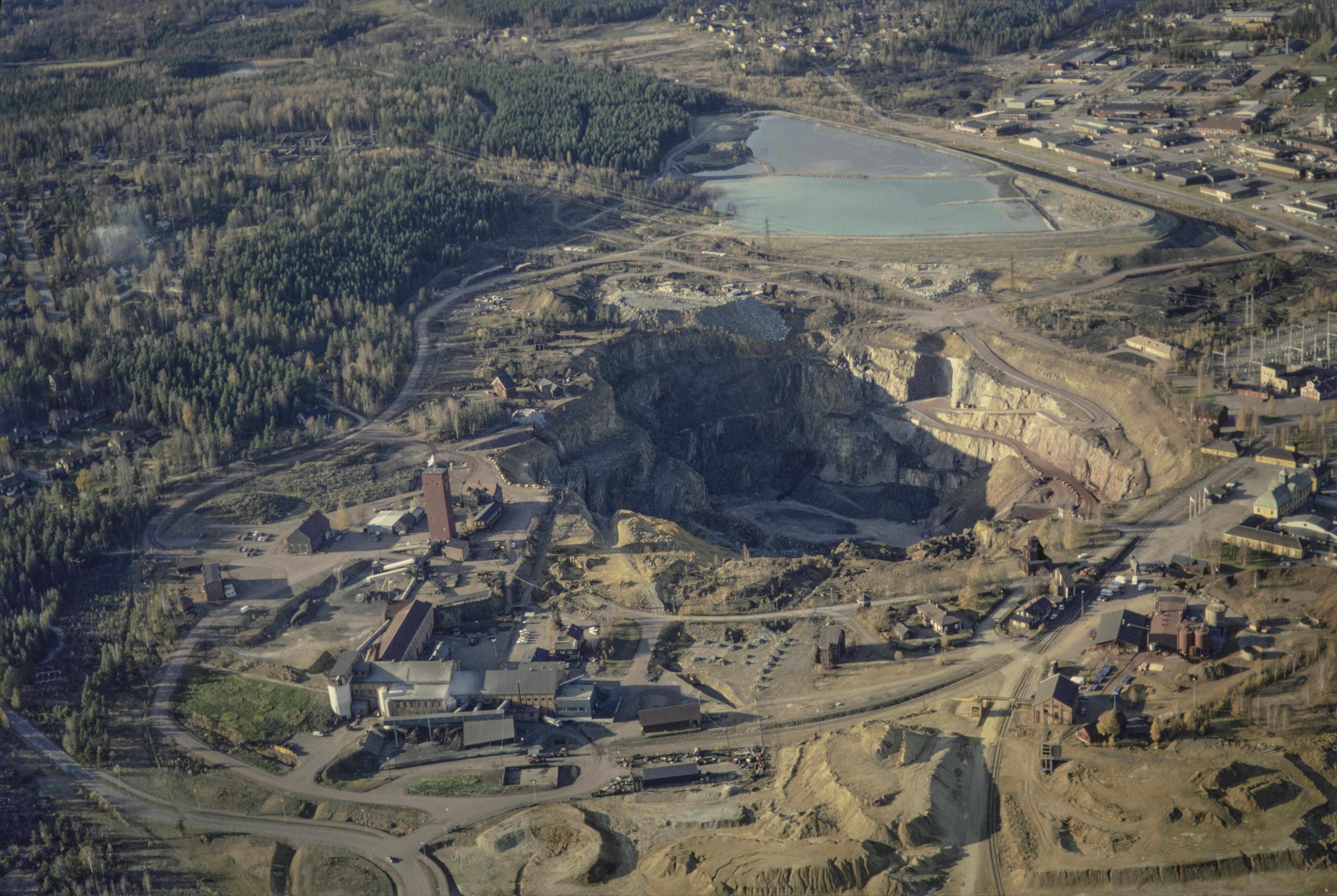 Beskrivning: Gruvhålet Stora Stöten RAÄnr Falun 17:1 i Falu koppargruva sydväst i Falu stad. Gruvmuseet i bildens högra kant. Gamla Bergsdammen i bildens övre del. Bilden är tagen mot (väderstreck): V