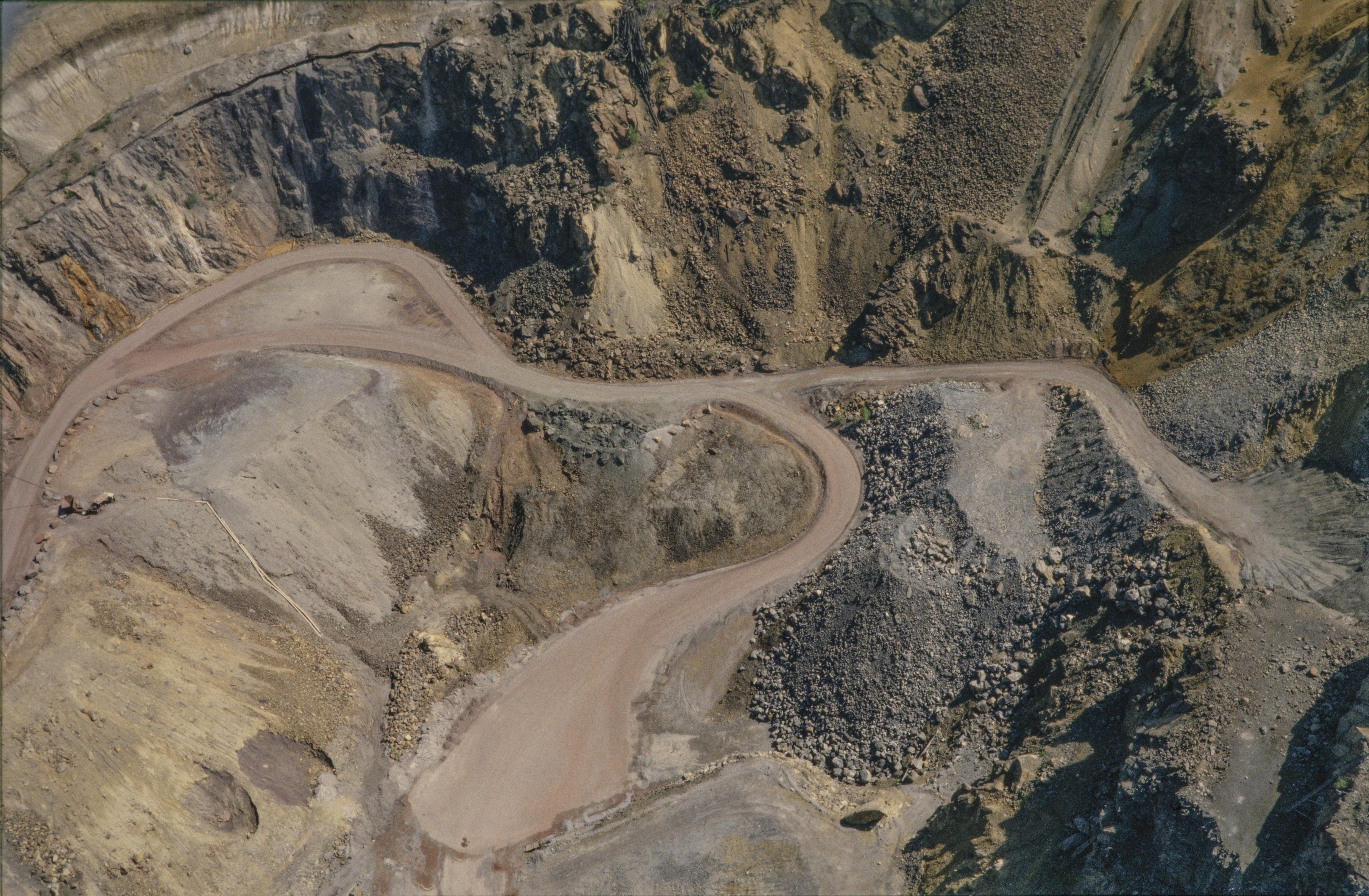 Beskrivning: Insidan av gruvhålet Stora Stöten RAÄnr Falun 17:1 i Falu koppargruva sydväst i Falu stad. Bilden är tagen mot (väderstreck): Ö