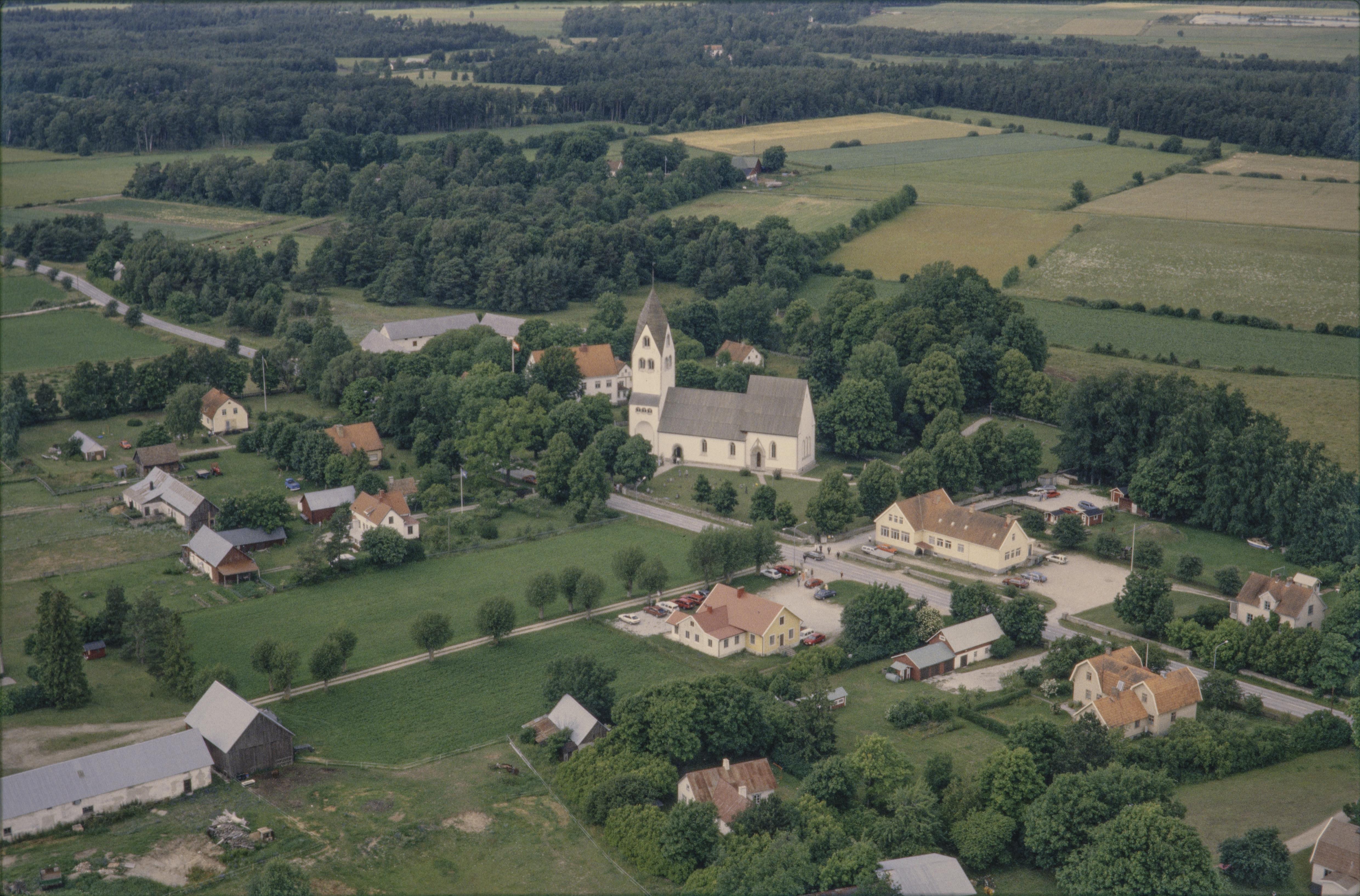 Beskrivning: Burs kyrka och kyrkby. Vid kyrkan grav RAÄnr Burs 166:1 m.fl. (Bilden tillhör även Riksintresse-nr I37 - Bandlunde.) Bilden är tagen mot (väderstreck): NNV