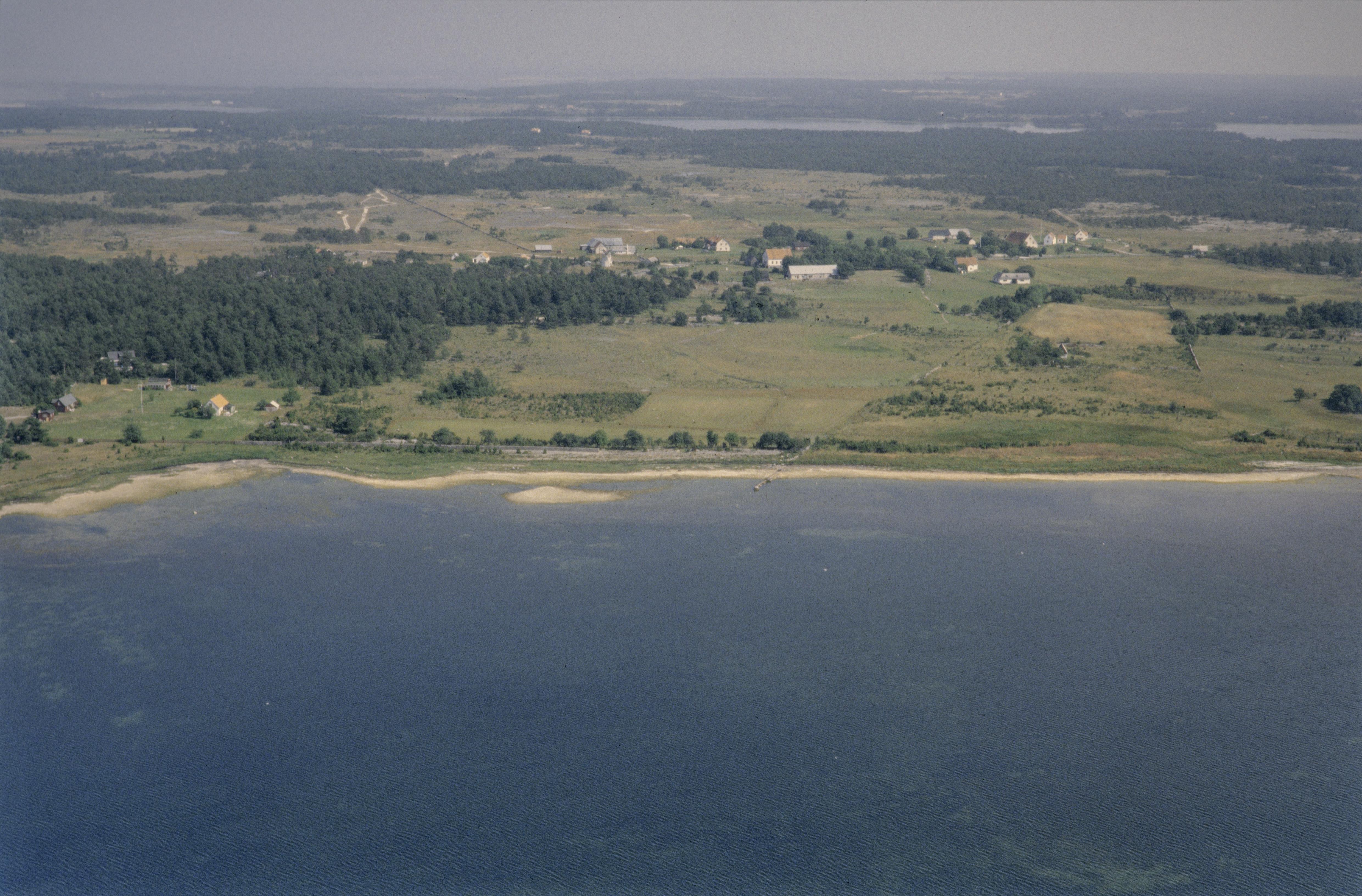 Beskrivning: Lauters by vid Lautervik. I bildens övre del område med skeppssättning och stensättningar RAÄnr Fårö 14:1-3 m.m. Bilden är tagen mot (väderstreck): NO