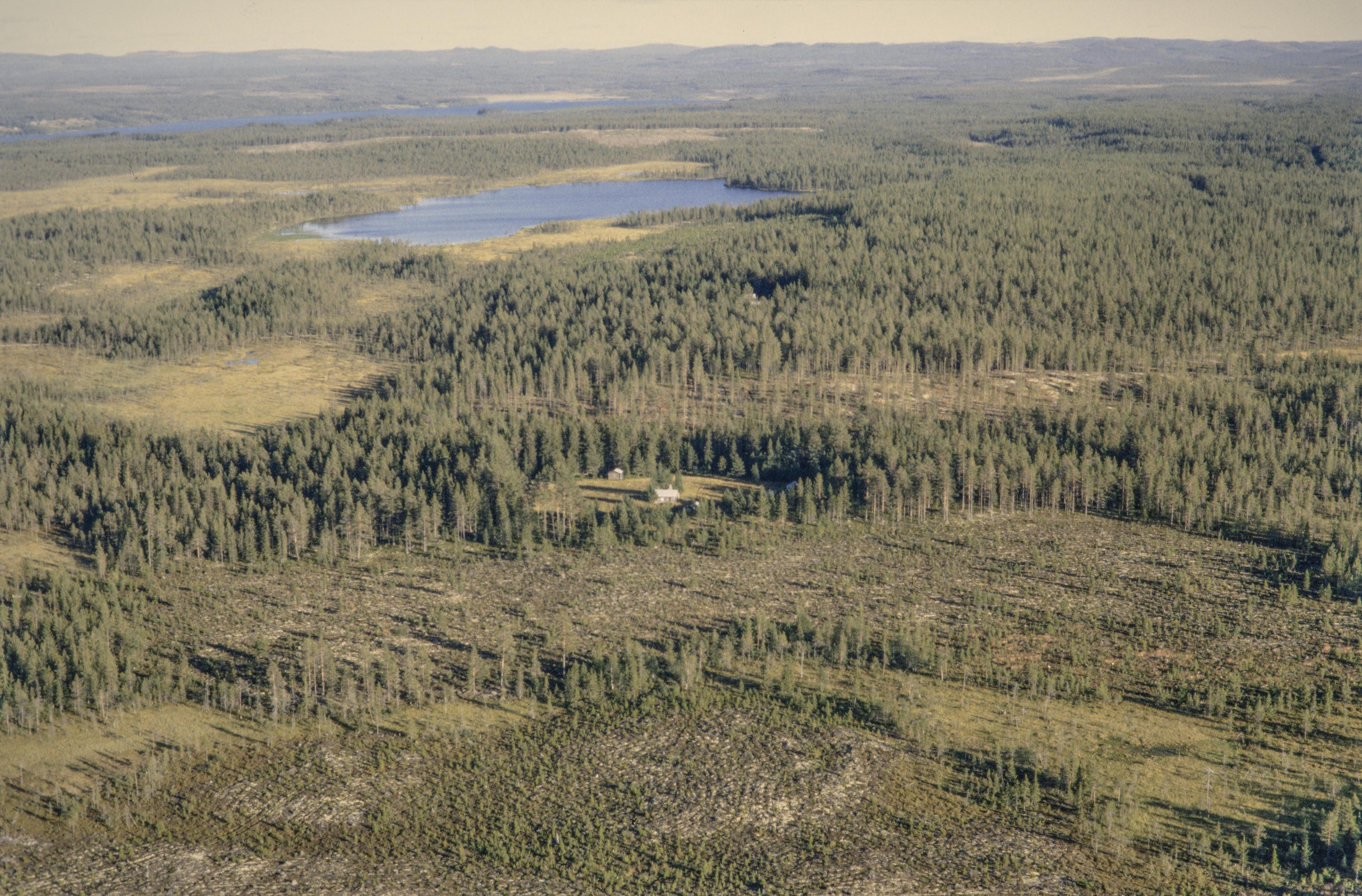 Beskrivning: I bildens nedre del området sydväst om Sätteltjärnen (ej i bilden). Vid bildens mitt norra delen av fäbodområdet Mossebodarna. Uppe till höger södra delen av Mossebodarna vid Galsjön. Bilden är tagen mot (väderstreck): SO