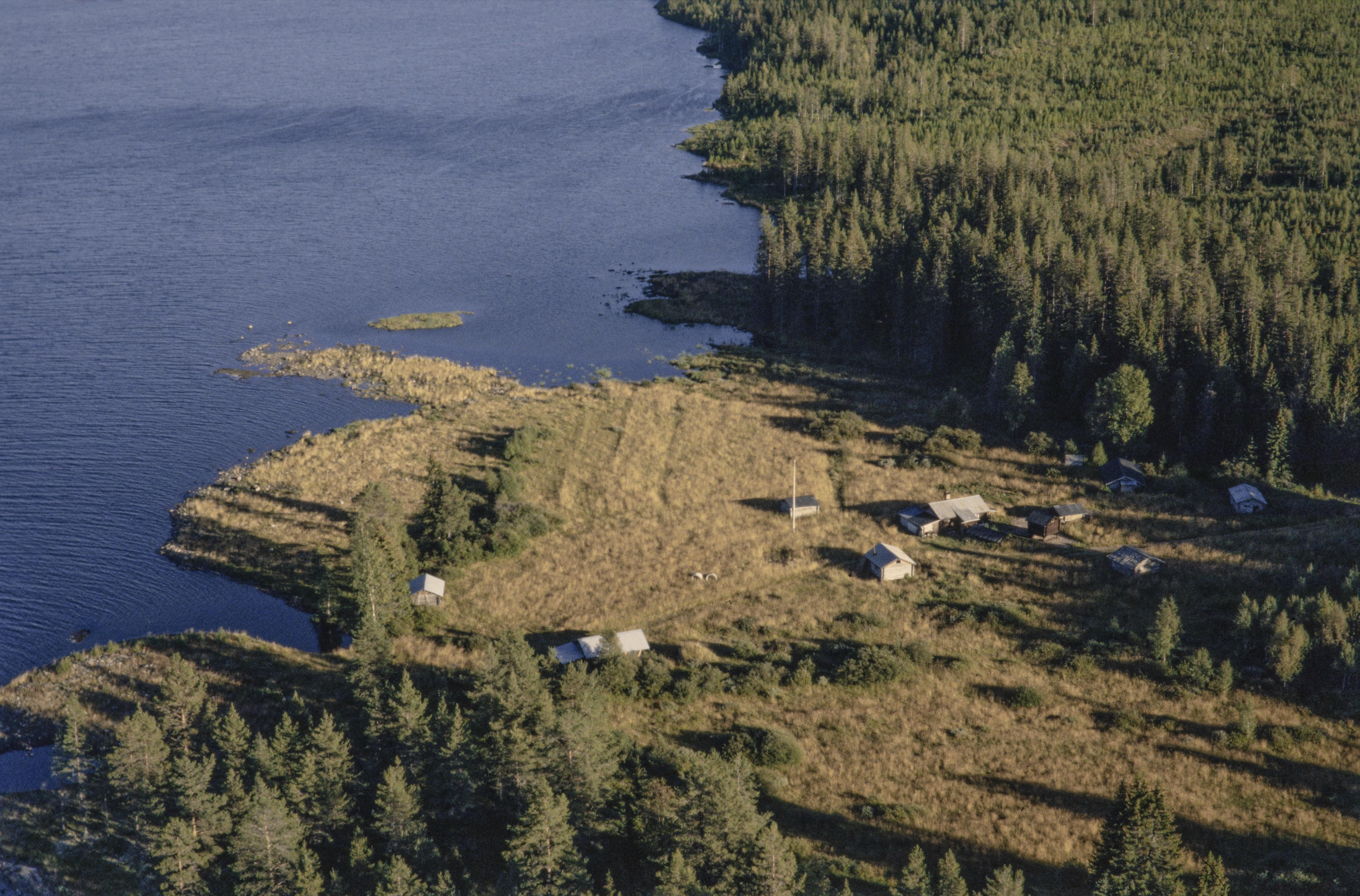 Beskrivning: Smedjemorasjön. Under bildens mitt Strömvallens by. I skogen nere till vänster fornlämningsplatsen RAÄnr Lillhärdal 132:1. Bilden är tagen mot (väderstreck): OSO