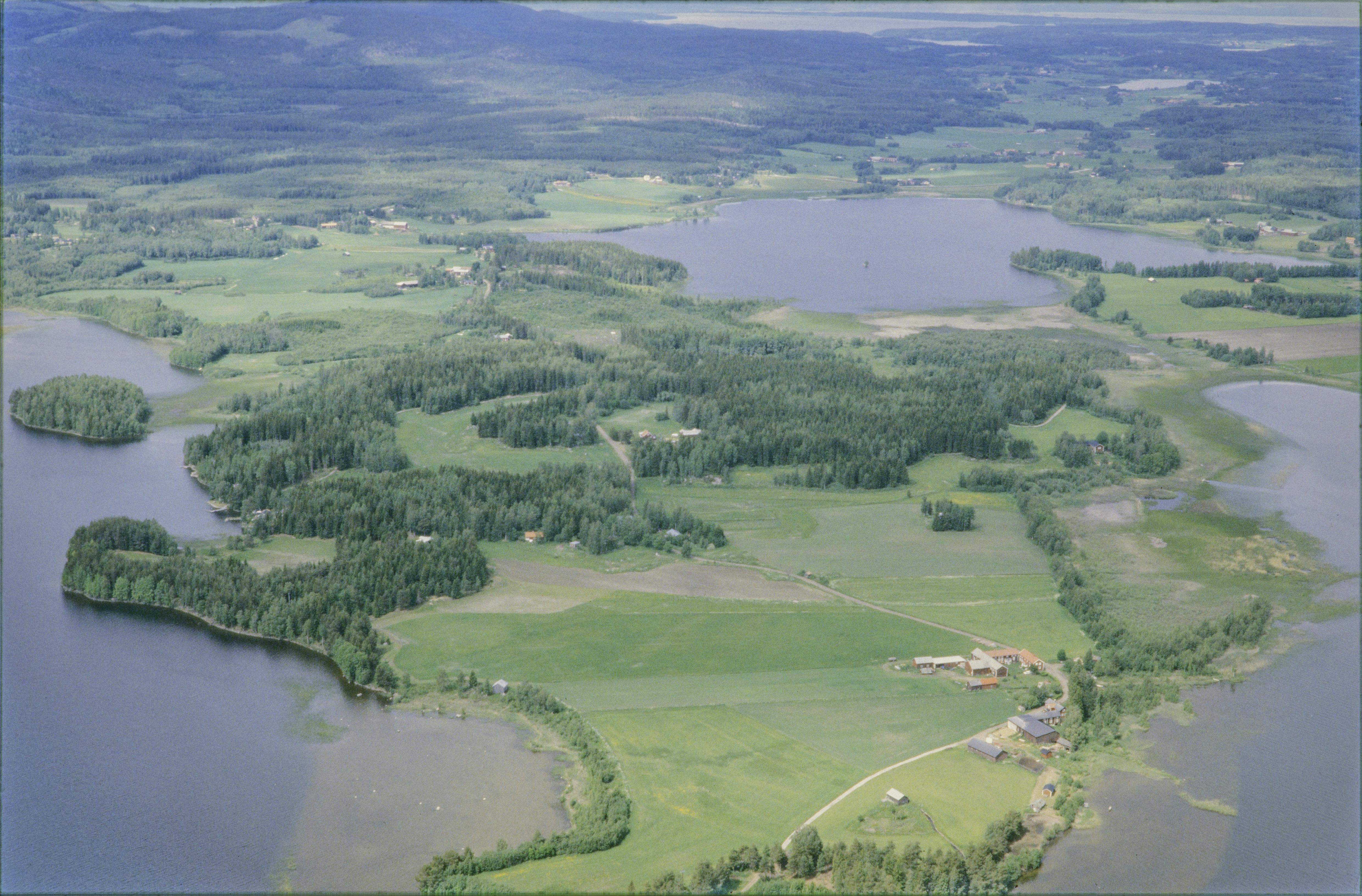Beskrivning: Näset mellan Storsjön (till vänster) och Långsjön. Vid bildens mitt gravfält RAÄnr Forsa 179:1 och fossil åker Forsa 764. Mikje by över bildens mitt. Storön till höger över bildens mitt. Bilden är tagen mot (väderstreck): VNV