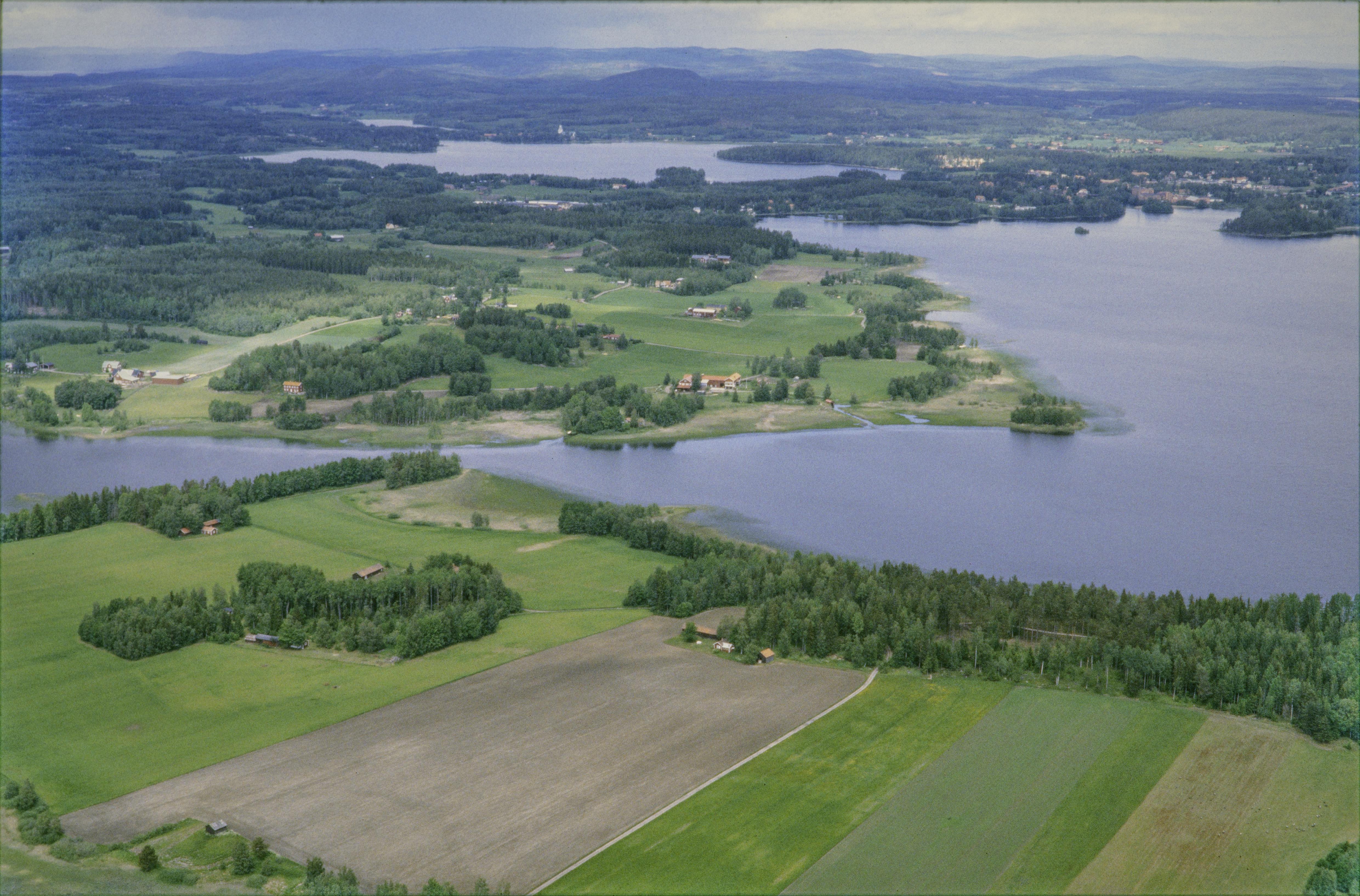 Beskrivning: Långsjön vid sundet mellan Storön (i bildens nedre del) och Utnäs (över bildens mitt). På Storön, till höger under bildens mitt, en kolningsanläggning RAÄnr Forsa 643. I bildens övre del Forsa kyrkby vid Kyrksjön. Bilden är tagen mot (väderstreck): N