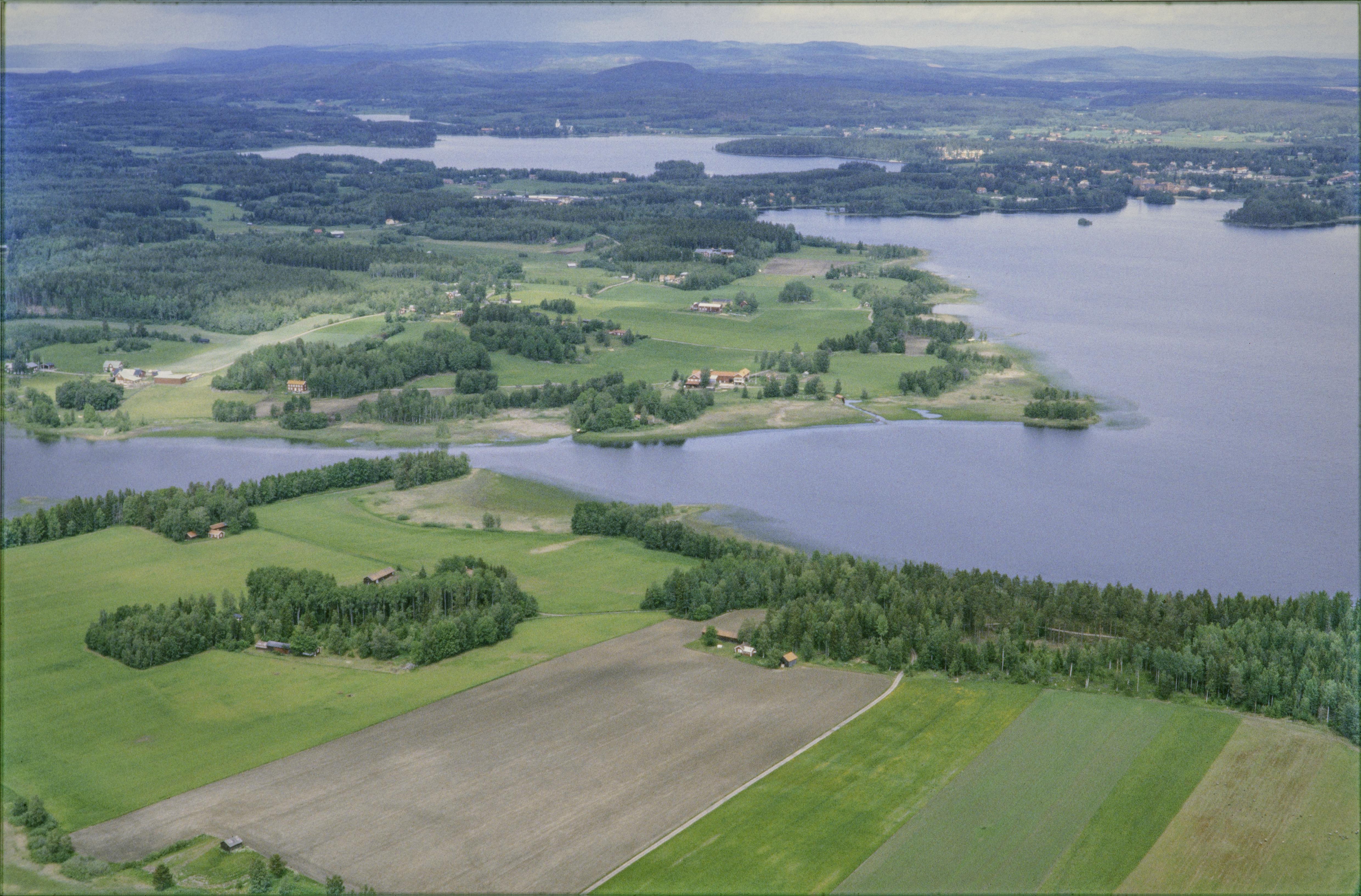 Beskrivning: Långsjön vid sundet mellan Storön (i bildens nedre del) och Utnäs (över bildens mitt). På Storön, till höger under bildens mitt, en kolningsanläggning RAÄnr Forsa 643. I bildens övre del Forsa kyrkby vid Kyrksjön. Bilden är tagen mot (väderstreck): N