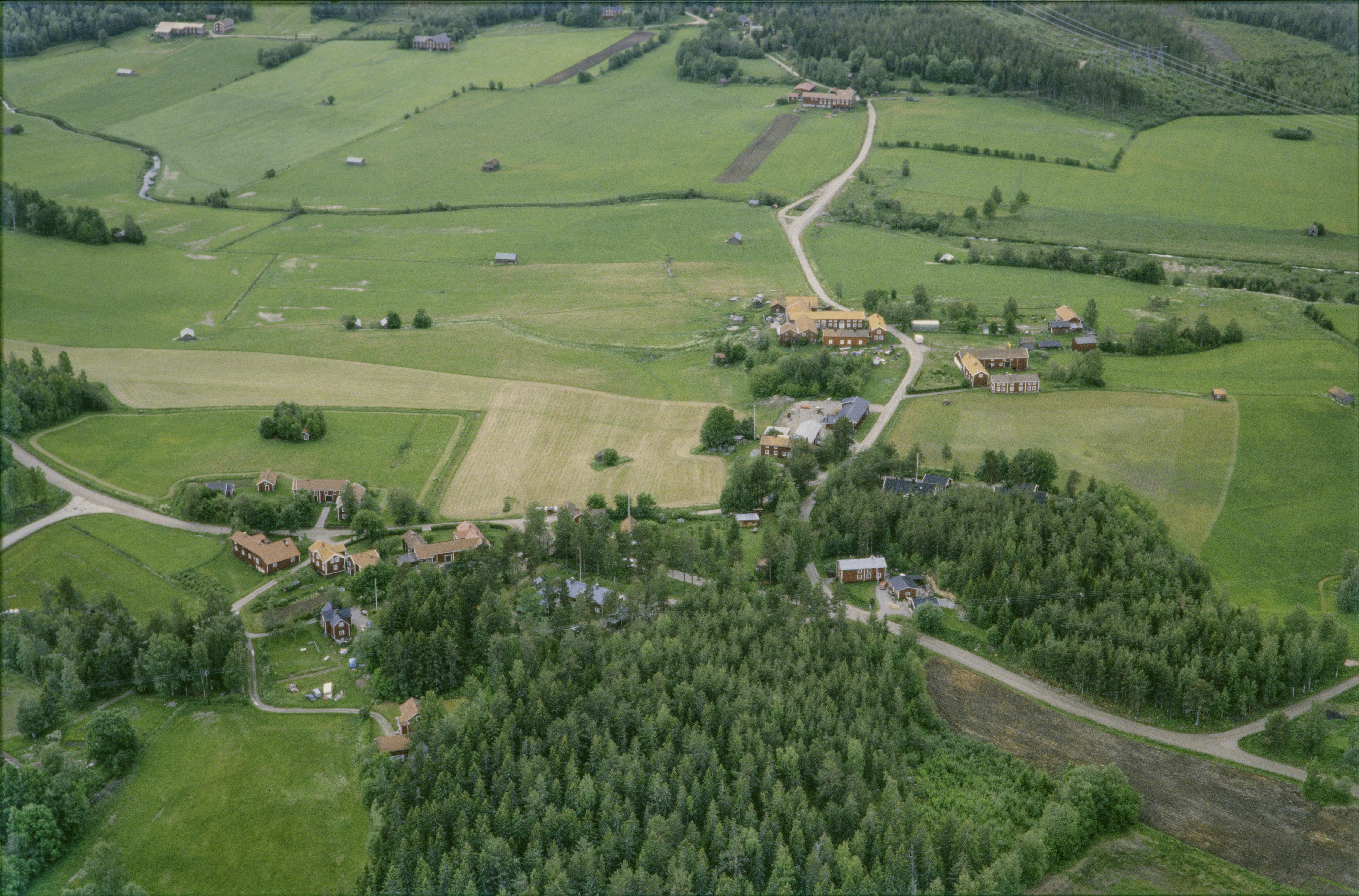 Beskrivning: Trogsta by vid Trogstaåns dalgång. I bildens övre del bytomt och bro över Trostaån RAÄnr Forsa 335:1-2 vid bytomt Forsa 336:1. Bilden är tagen mot (väderstreck): SSV