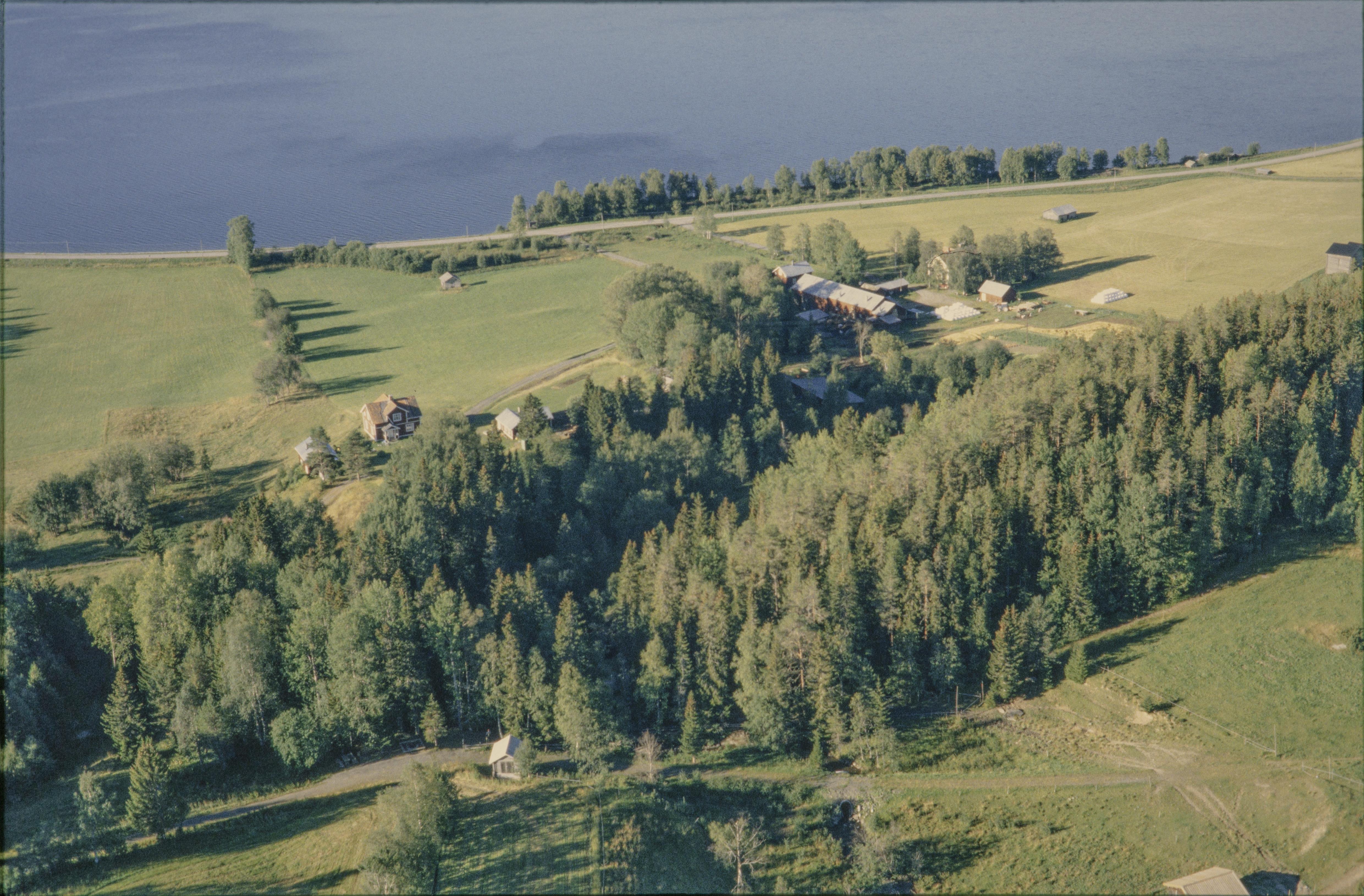 Beskrivning: Glösa by vid pilgrimleden Sankt Olavsleden på nordsidan av Alsensjön. I skogen vid bildens mitt Glösaberget med hällristningar RAÄnr Alsen 13:1. Bilden är tagen mot (väderstreck): VSV