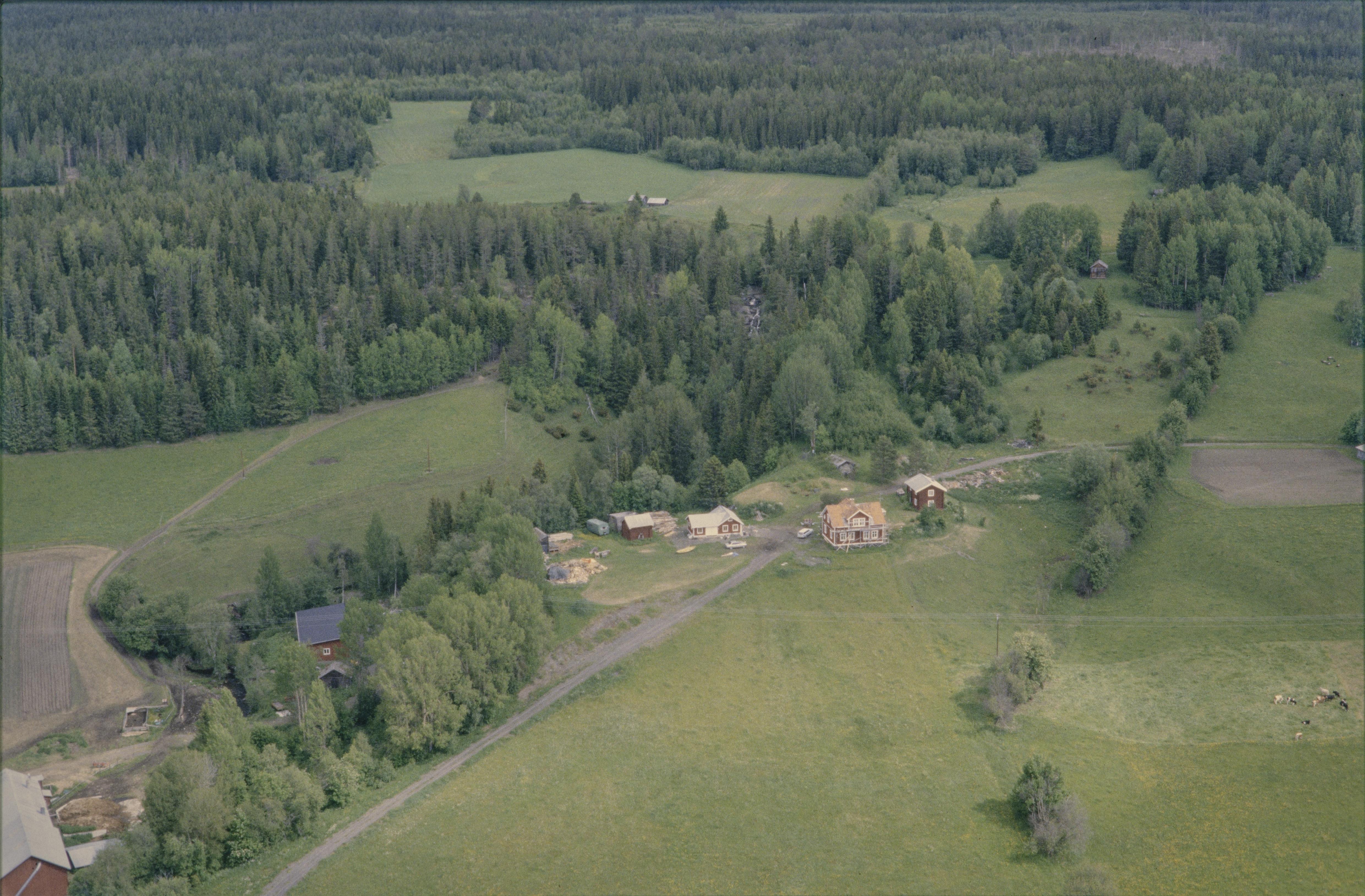 Beskrivning: Glösa by vid pilgrimleden Sankt Olavsleden på nordsidan av Alsensjön. I skogen över bildens mitt Glösaberget med hällristningar RAÄnr Alsen 13:1. Bilden är tagen mot (väderstreck): NNO