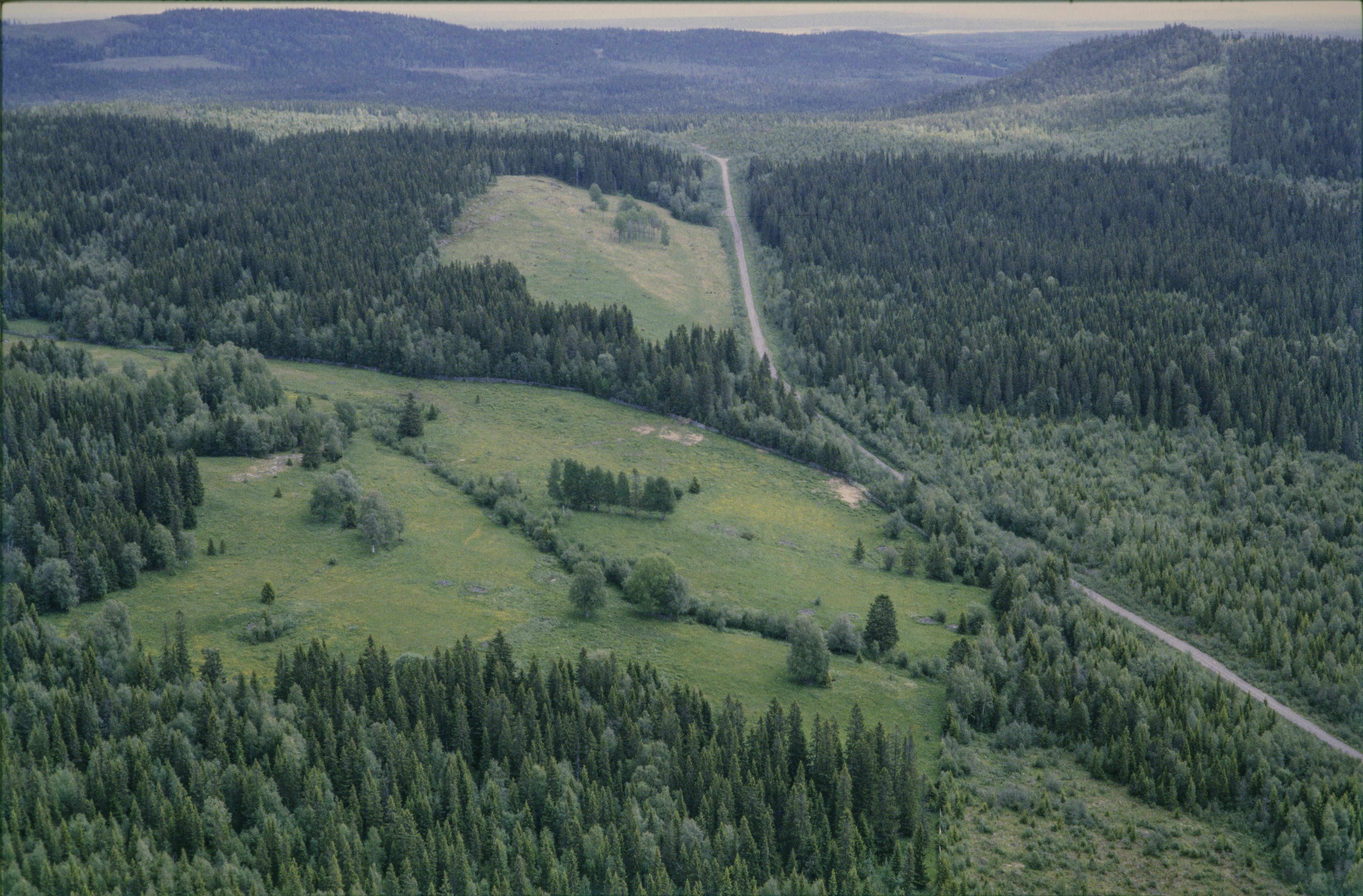 Beskrivning: Över bildens mitt ödesbölet Svedäng med husgrunder och fossila åkrar RAÄnr Alsen 92:1-2, 178:1 och 179:1-2. Bilden är tagen mot (väderstreck): ONO