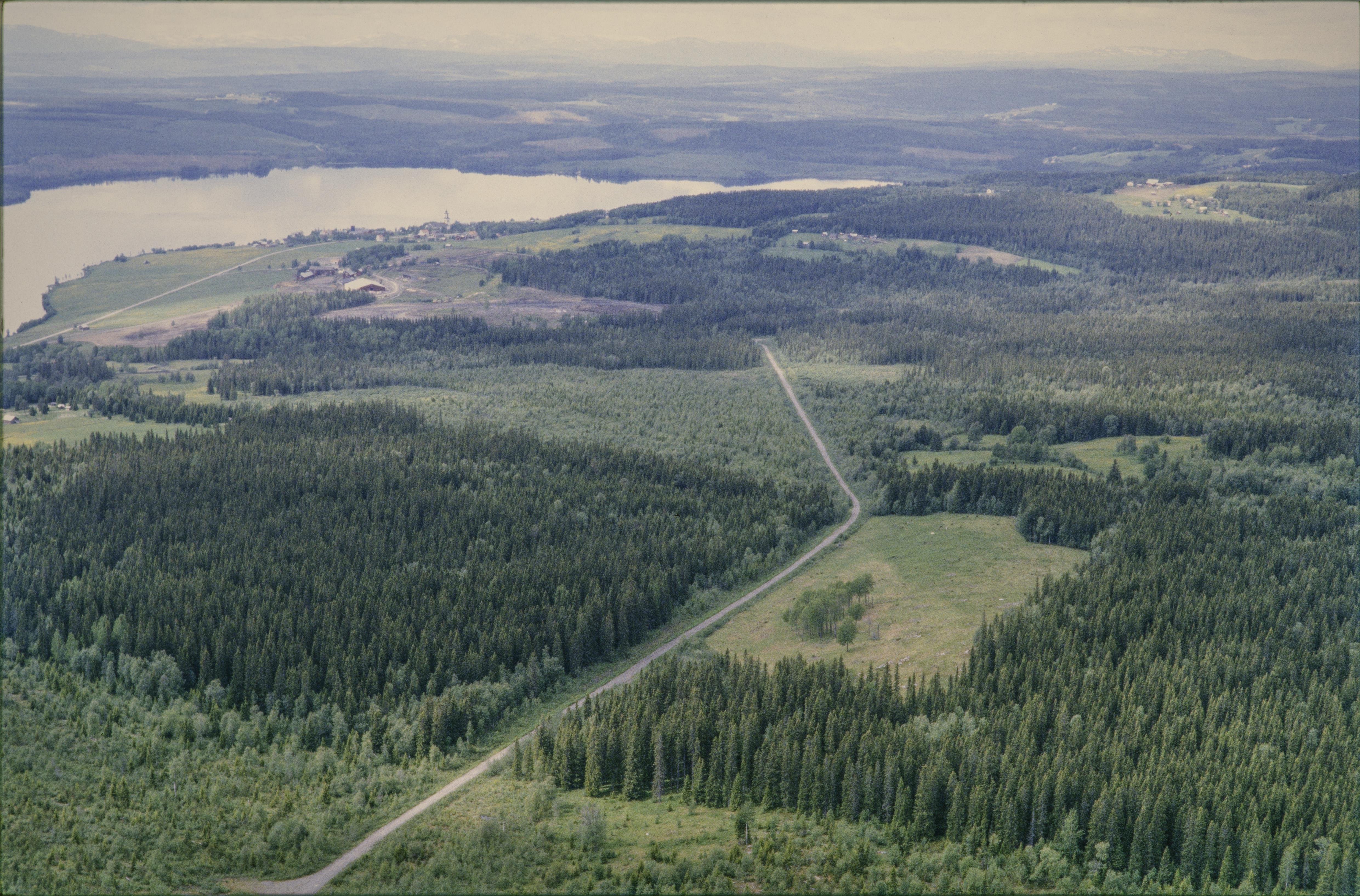 Beskrivning: I bildens nedre del ödesbölet Svedäng med husgrunder och fossila åkrar RAÄnr Alsen 92:1-2, 178:1 och 179:1-2. I bildens övre del Alsens kyrka och kyrkby vid Alsensjön. Bilden är tagen mot (väderstreck): V