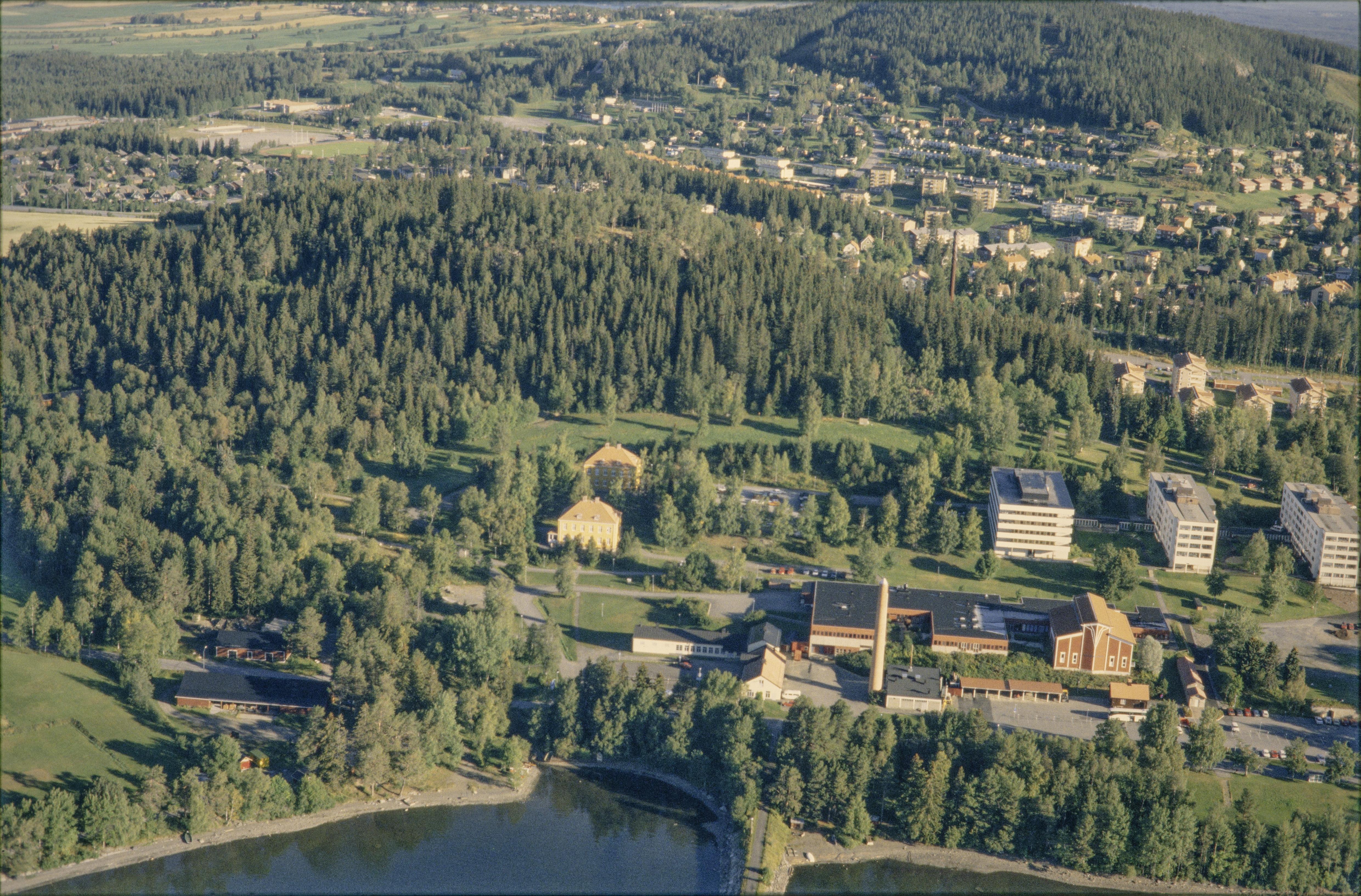 Beskrivning: Östersunds stad, västra delen. Området Frösö strand på Frösön i Storsjön. Vid bildens mitt fornborg Mjälleborgen RAÄnr Frösö 81:1 och boplats Frösö 81:2 på Öneberget. Bilden är tagen mot (väderstreck): NNV