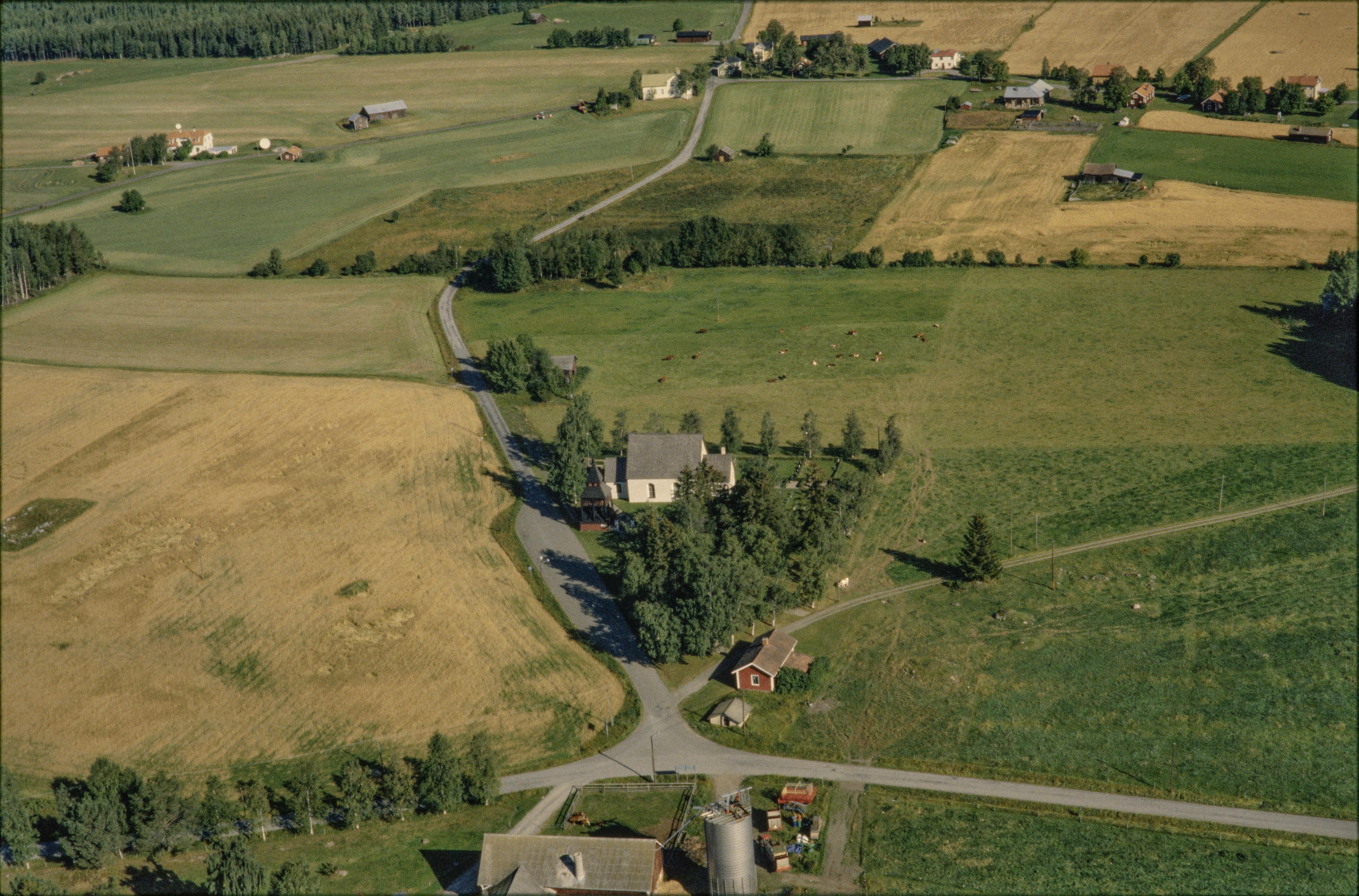Beskrivning: Norderö kyrka och kyrkby på ön Norderön i Storsjön. Vid kyrkan flera högar, RAÄnr Norderö 19:1, 23:1, 31:1 m.fl. Bilden är tagen mot (väderstreck): NNO