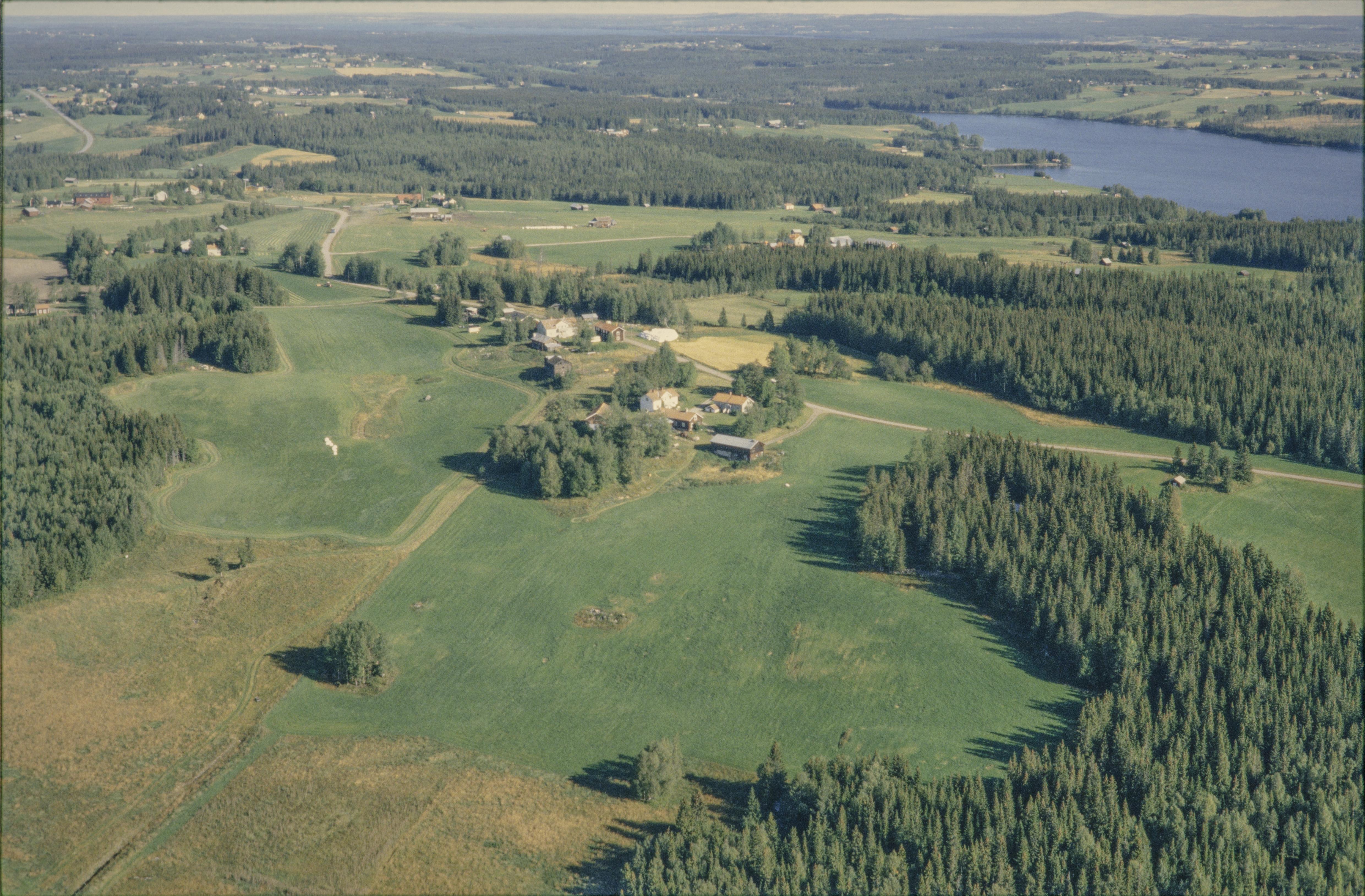 Beskrivning: Hällne by vid Myrviken i Storsjön. Området Klockarbacken i bildens nedre del. Till vänster över bildens mitt Hällneborgs kyrka RAÄnr Oviken 542 och 545 m.m. Vid bildens mitt bytomt RAÄnr Oviken 544. Bilden är tagen mot (väderstreck): NNO