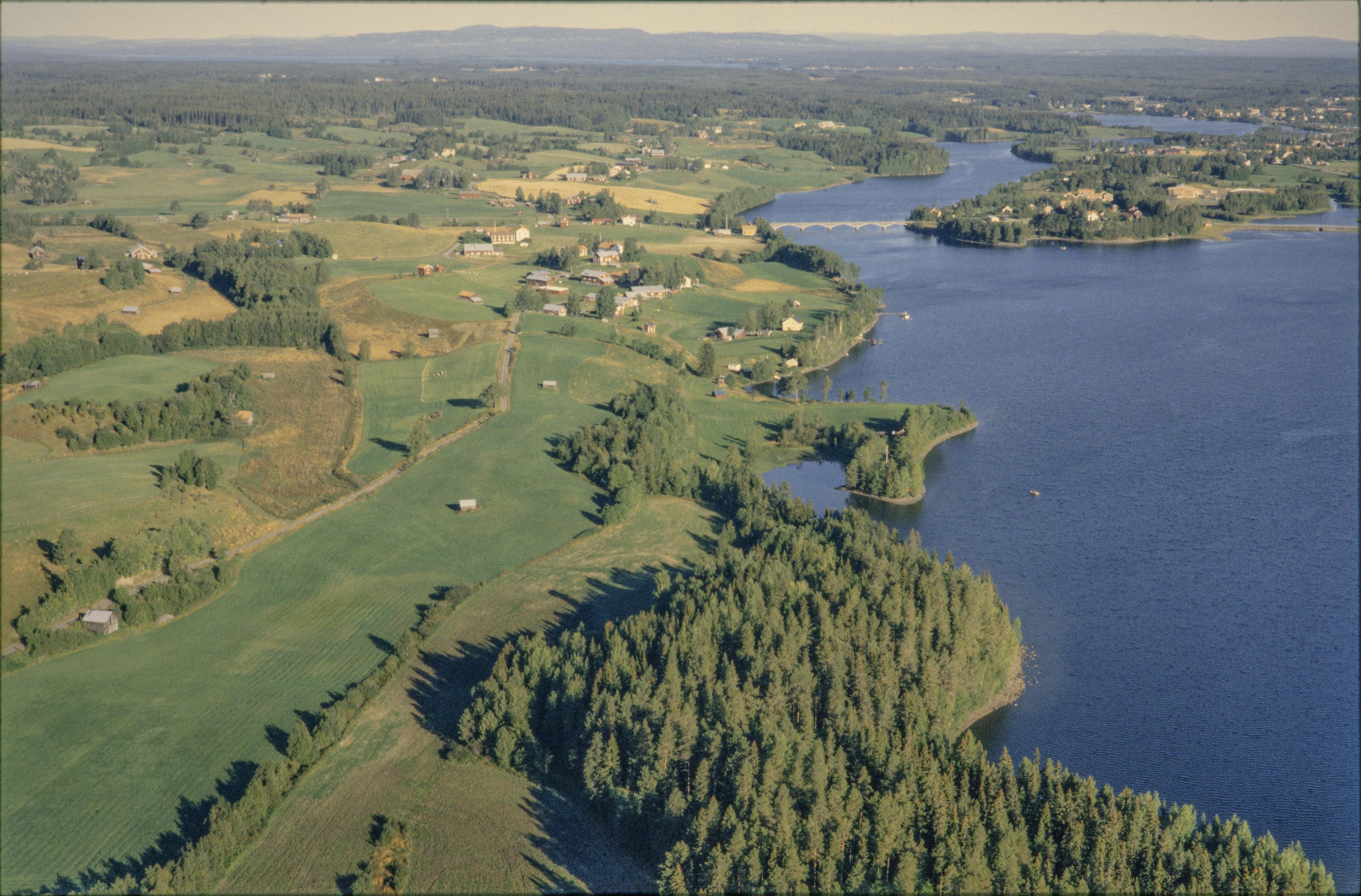 Beskrivning: Norra delen av Krokomsviken i Storsjön. Nylands by med bytomt RAÄnr Rödön 308:1 vid bildens mitt. Till vänster över bildens mitt byn Bergom med bytomt Rödön 335:1. Fannbyn uppe till höger. Bilden är tagen mot (väderstreck): NNV