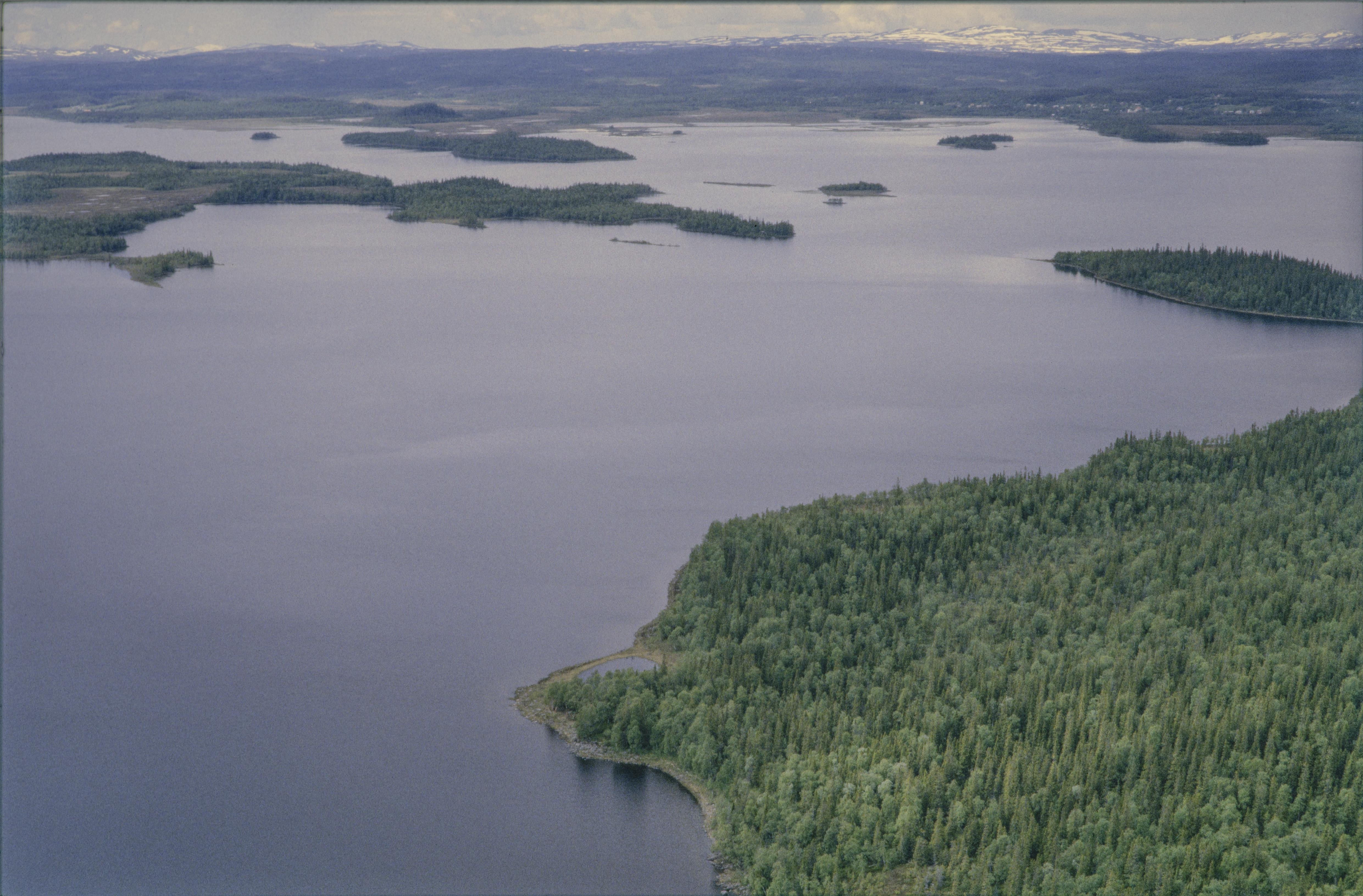 Beskrivning: Ånnsjön, norra delen. Nere till höger Håltberget med hällristningar RAÄnr Åre 2:1, Åre 3:1 och Åre 328:1. Uppe till vänster Årsön med boplats RAÄnr Åre 7:1, 216:1 m.m. Till höger över bildens mitt Duvedsholmen med boplats RAÄnr Åre 229:1, 230:1 m.m. Bilden är tagen mot (väderstreck): VNV
