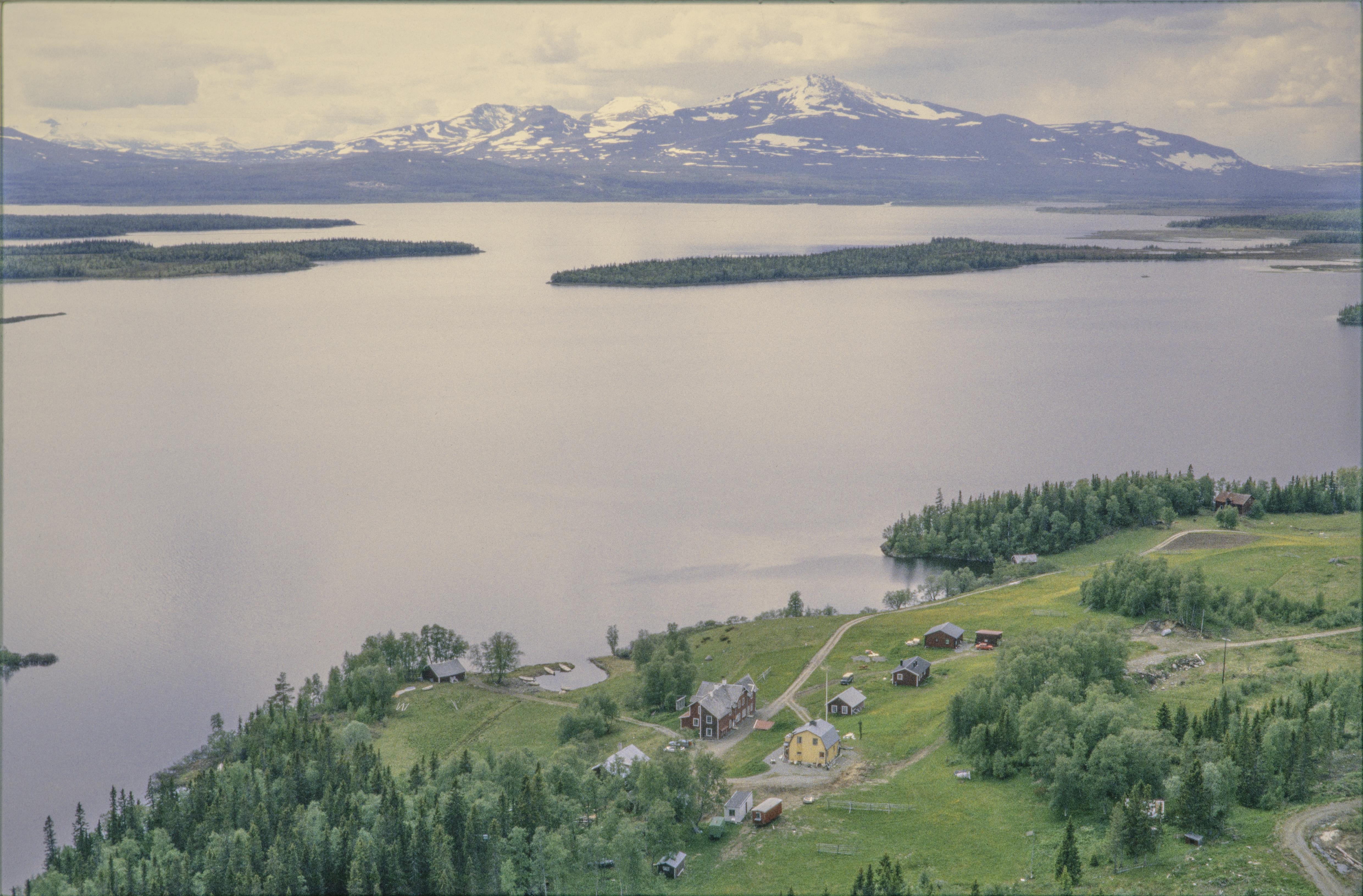 Beskrivning: Ånnsjön, norra delen. Landverks by nere till höger med bytomt och fossil åker RAÄnr Åre 151:1-2. På udden vid Indalsälven nere till vänster boplats RAÄnr Åre 163:1. Vid stranden i mitten av bildens högra kant område med hällristningar RAÄnr Åre 1:1-2. Bilden är tagen mot (väderstreck): SSV