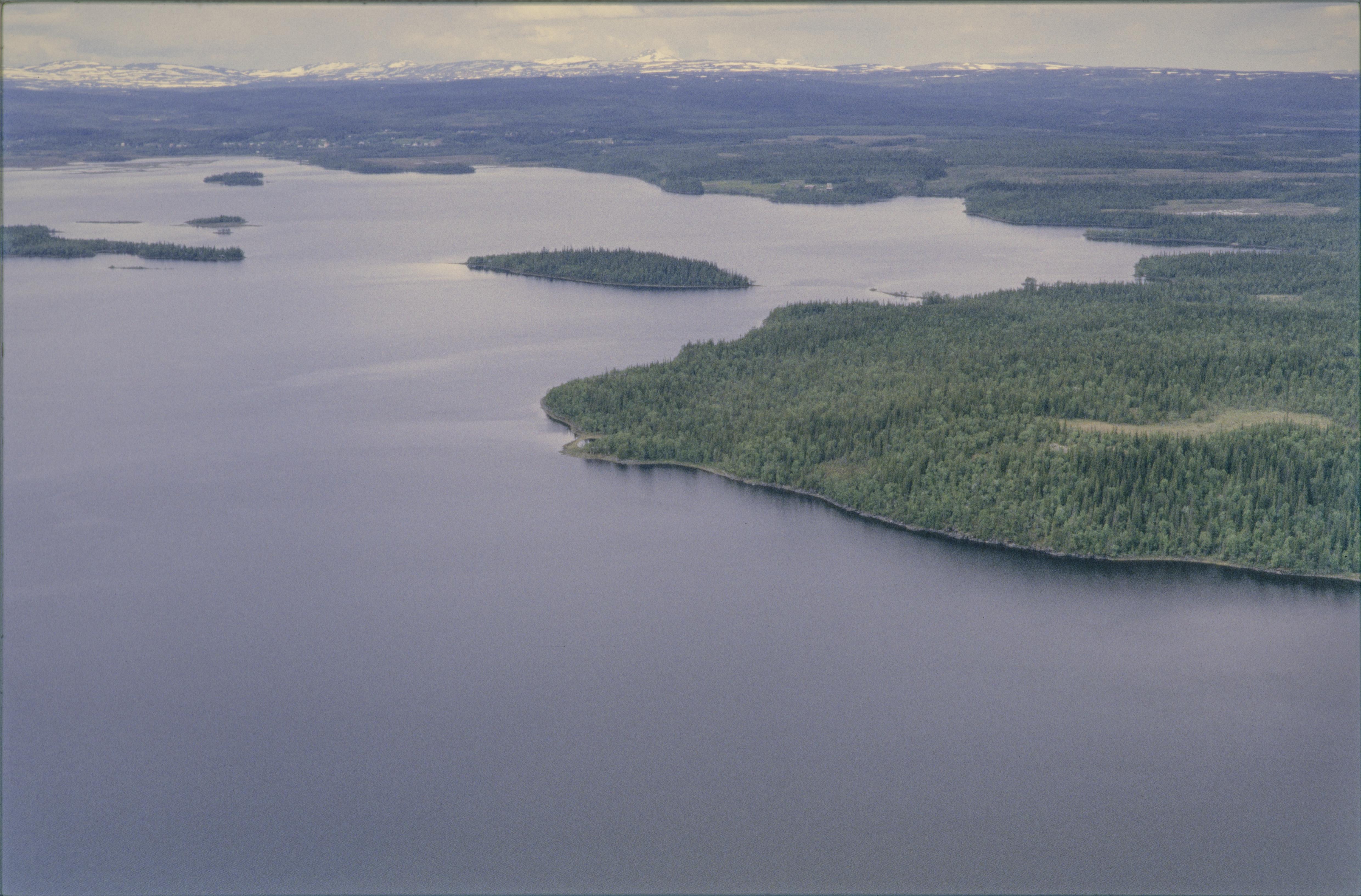 Beskrivning: Ånnsjön, norra delen. Till höger Håltberget med hällristningar RAÄnr Åre 2:1, Åre 3:1 och Åre 328:1. Över bildens mitt Duvedsholmen med boplats RAÄnr Åre 229:1, 230:1 m.m. Bilden är tagen mot (väderstreck): NV