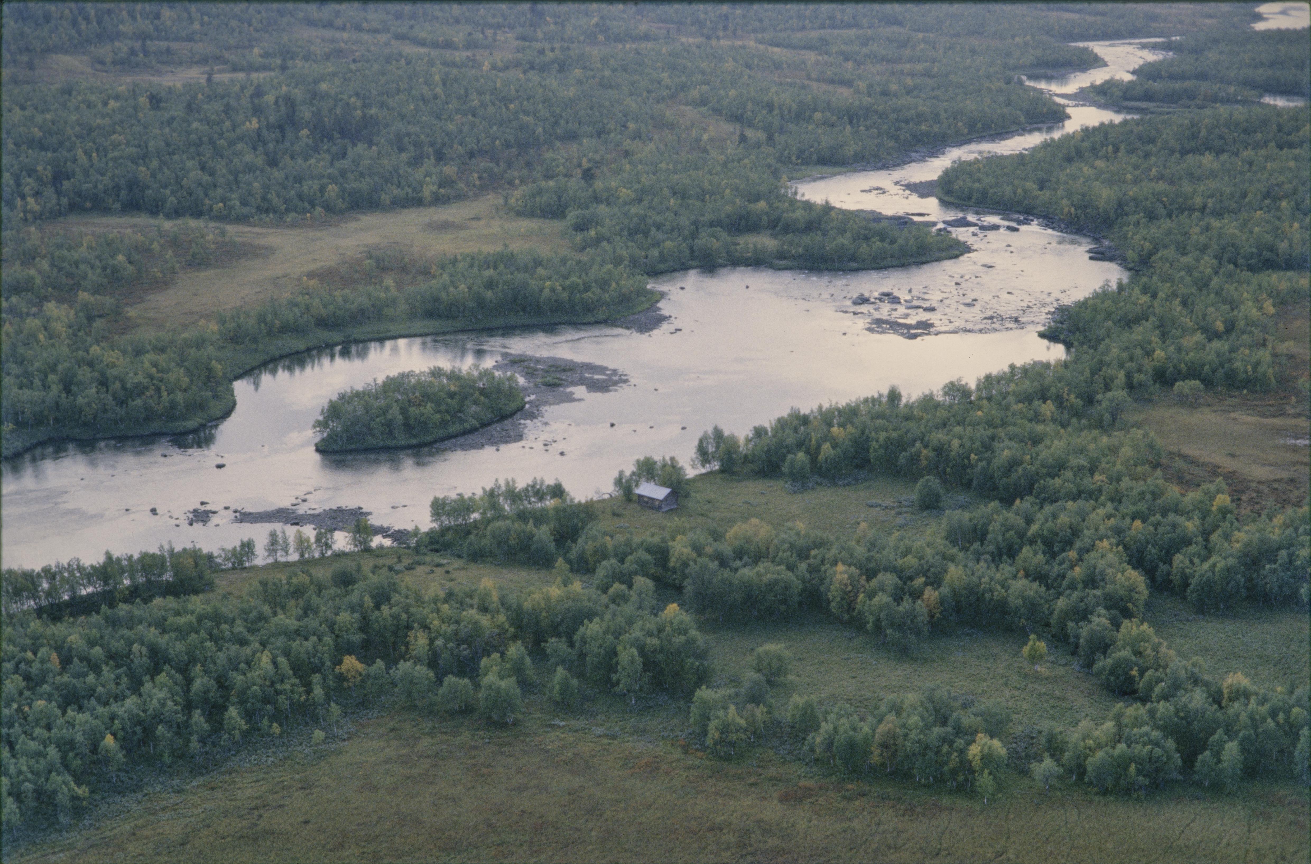 Beskrivning: Laisälven (Lájsso) vid Fjällfors småbruk / fjällägenhet i dalgången nordväst om byn Adolfsström. Ingår i Laisdalens fjällurskogs naturreservat. Bilden är tagen mot (väderstreck): SV