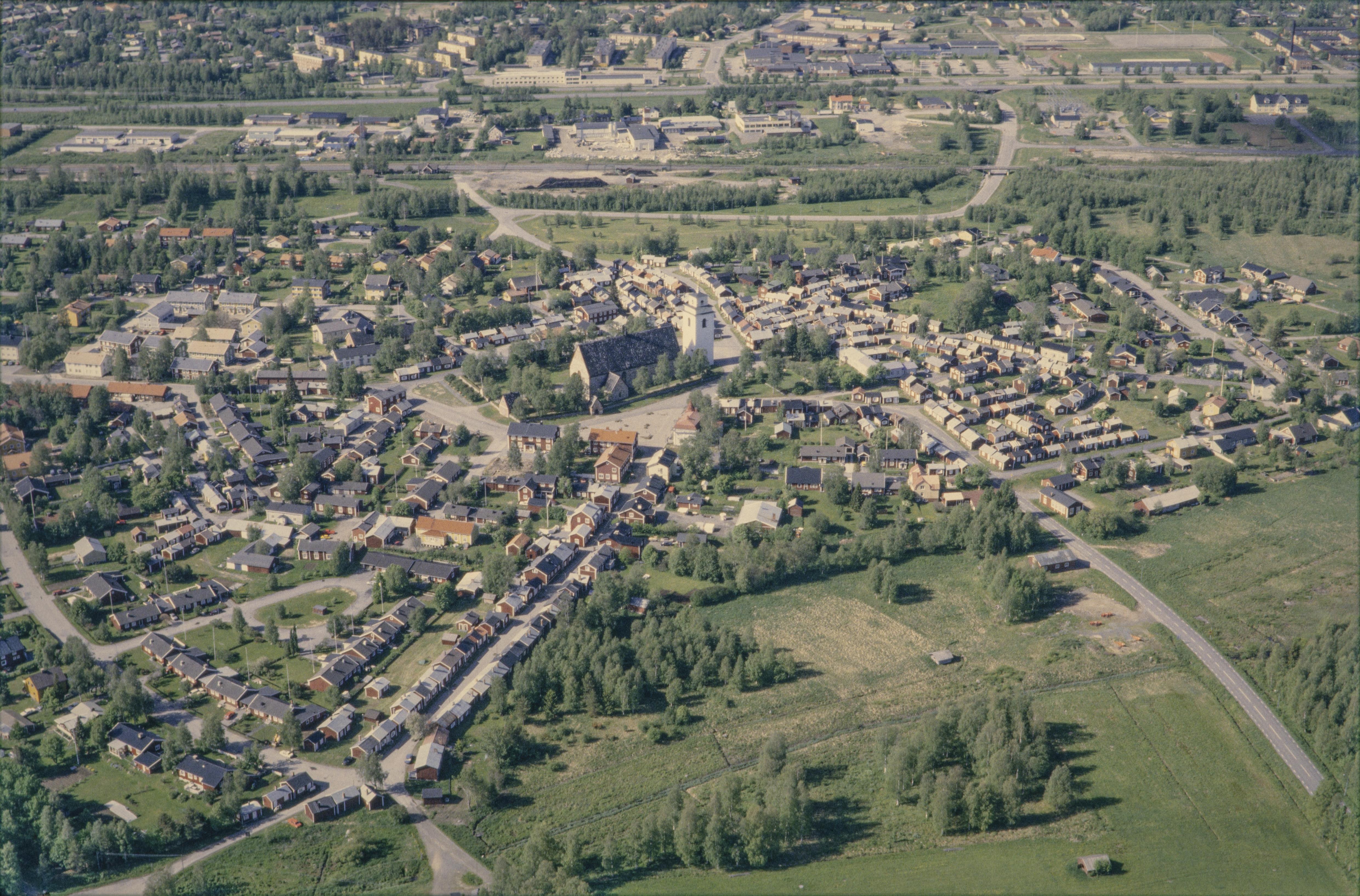 Beskrivning: Gammelstads kyrkstad och världsarv. Nederluleå kyrka vid bildens mitt. Vid kyrkan ett minnesmärke RAÄnr Nederluleå 67:1, bytomt Nederluleå 175:1, m.m. Bilden är tagen mot (väderstreck): SSV