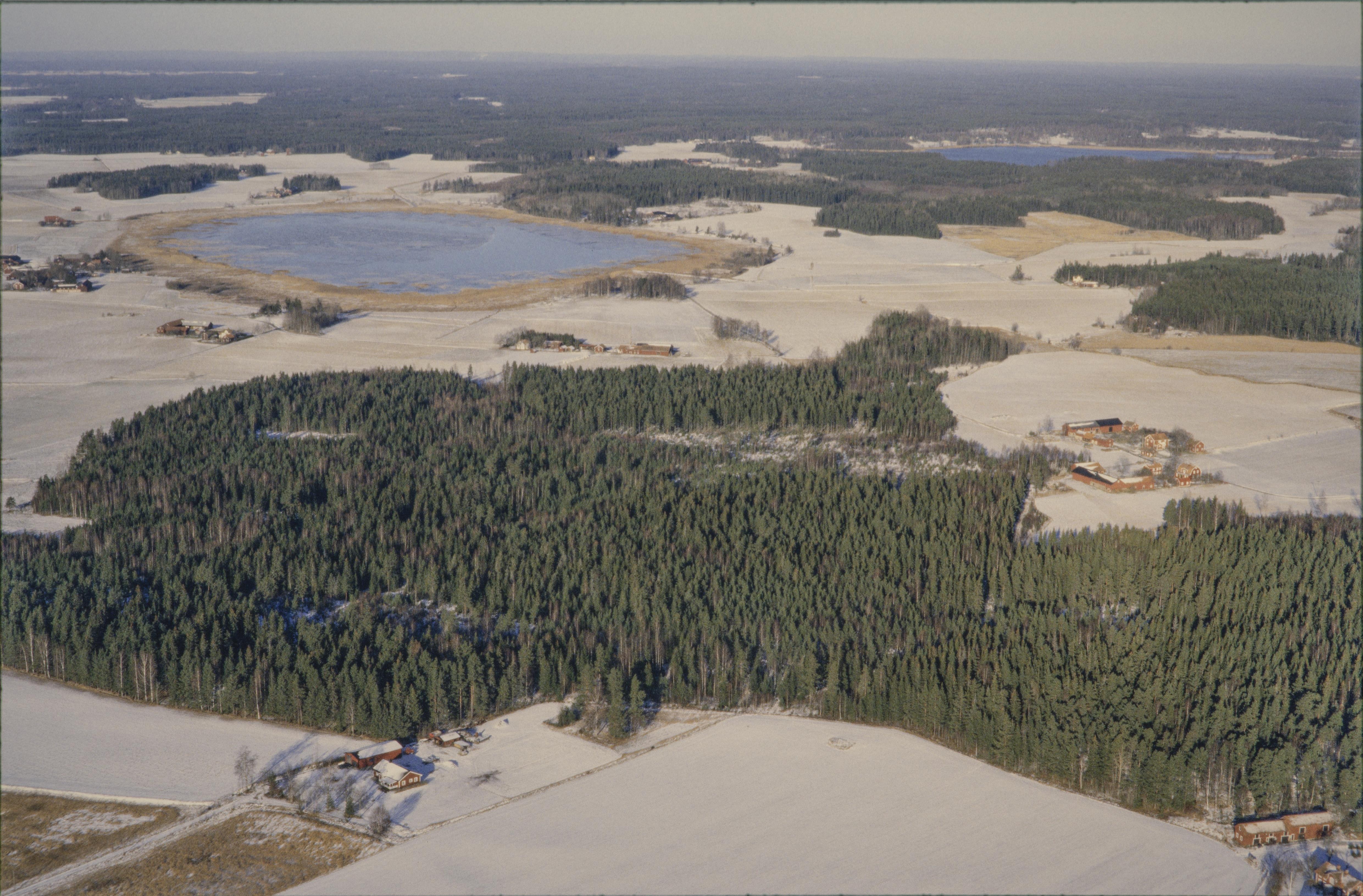 Beskrivning: Gussjö by. Över bildens mitt fornlämningsområde med runristning RAÄnr Fläckebo 2:1, hällristning Fläckebo 218, husgrund Fläckebo 46:1 m.fl. söder om Gussjön. Bilden är tagen mot (väderstreck): N