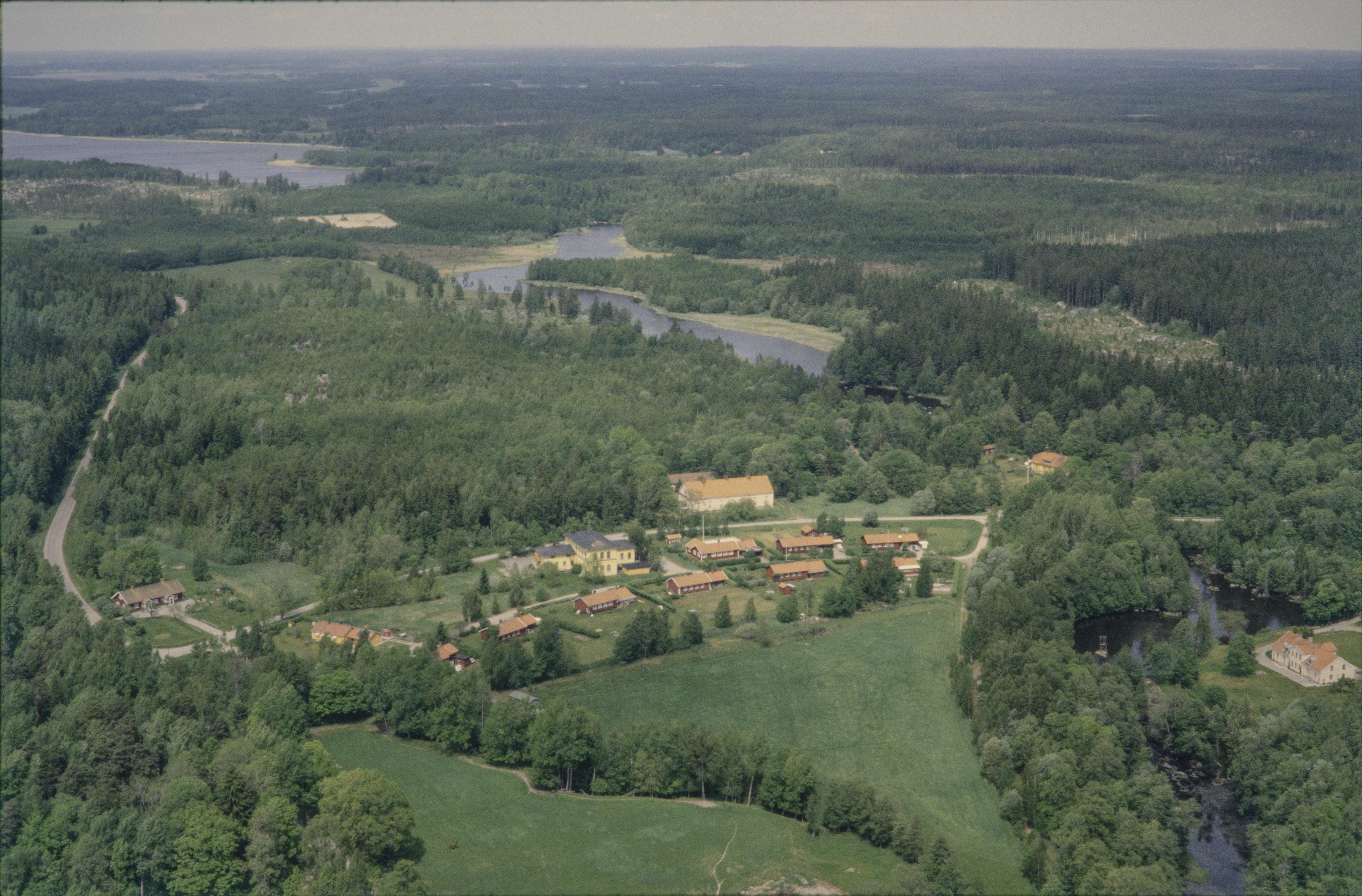 Beskrivning: Svanå bruk i Svartåns dalgång. Till höger hammarområde RAÄnr Haraker 77:1. Bilden är tagen mot (väderstreck): N
