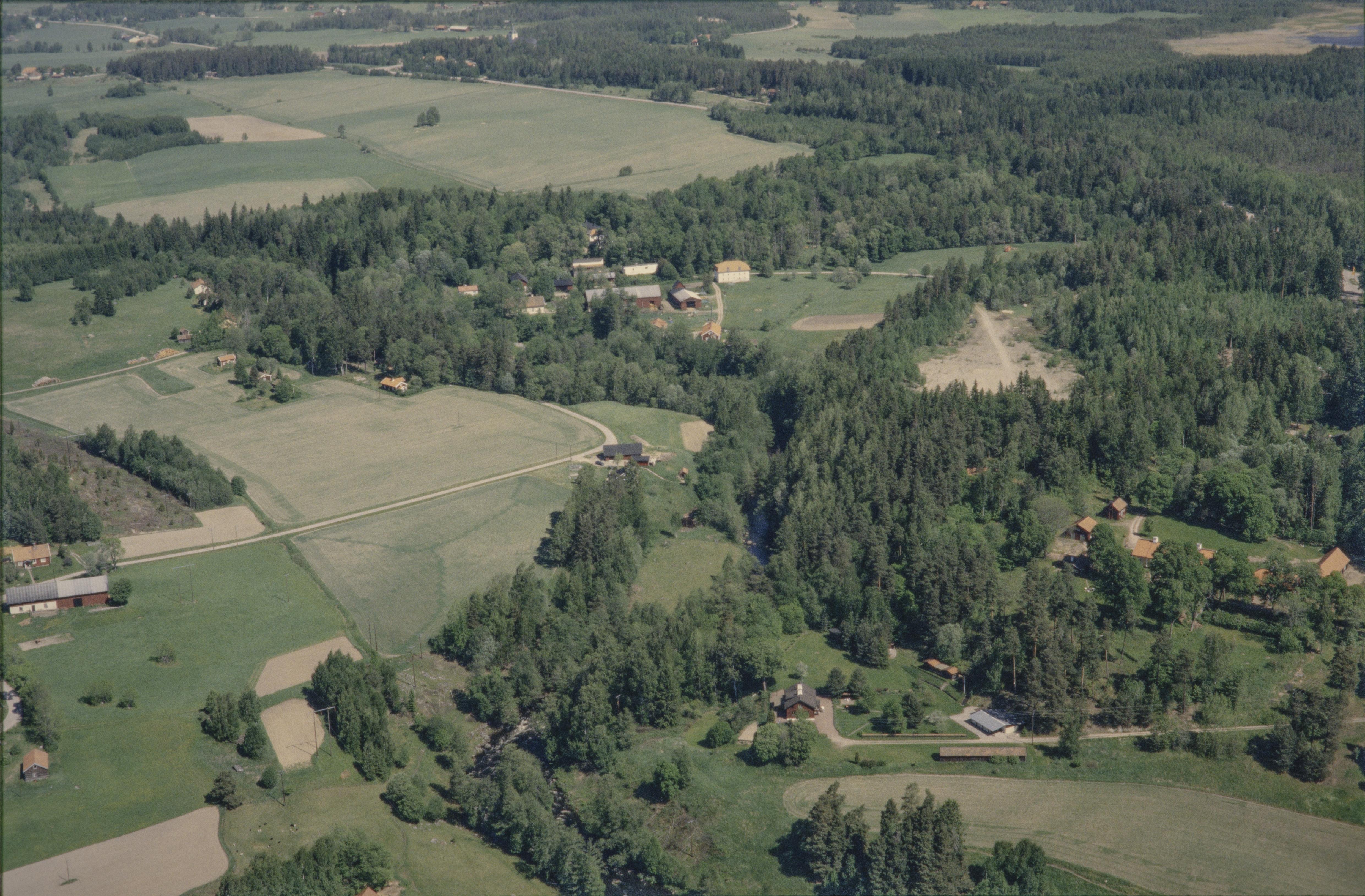 Beskrivning: Hedströmmens dalgång som markerar gränsen mellan socknen Kolsva (nere till vänster) och Hed (över och till höger). Nere till vänster Valbricka by med hammarområde RAÄnr Kolsva 224:1. Uppe till höger Bernshammars bruk och Bergshammars herrgård vid hammarområde RAÄnr Hed 9:1 m.fl. Bilden är tagen mot (väderstreck): N