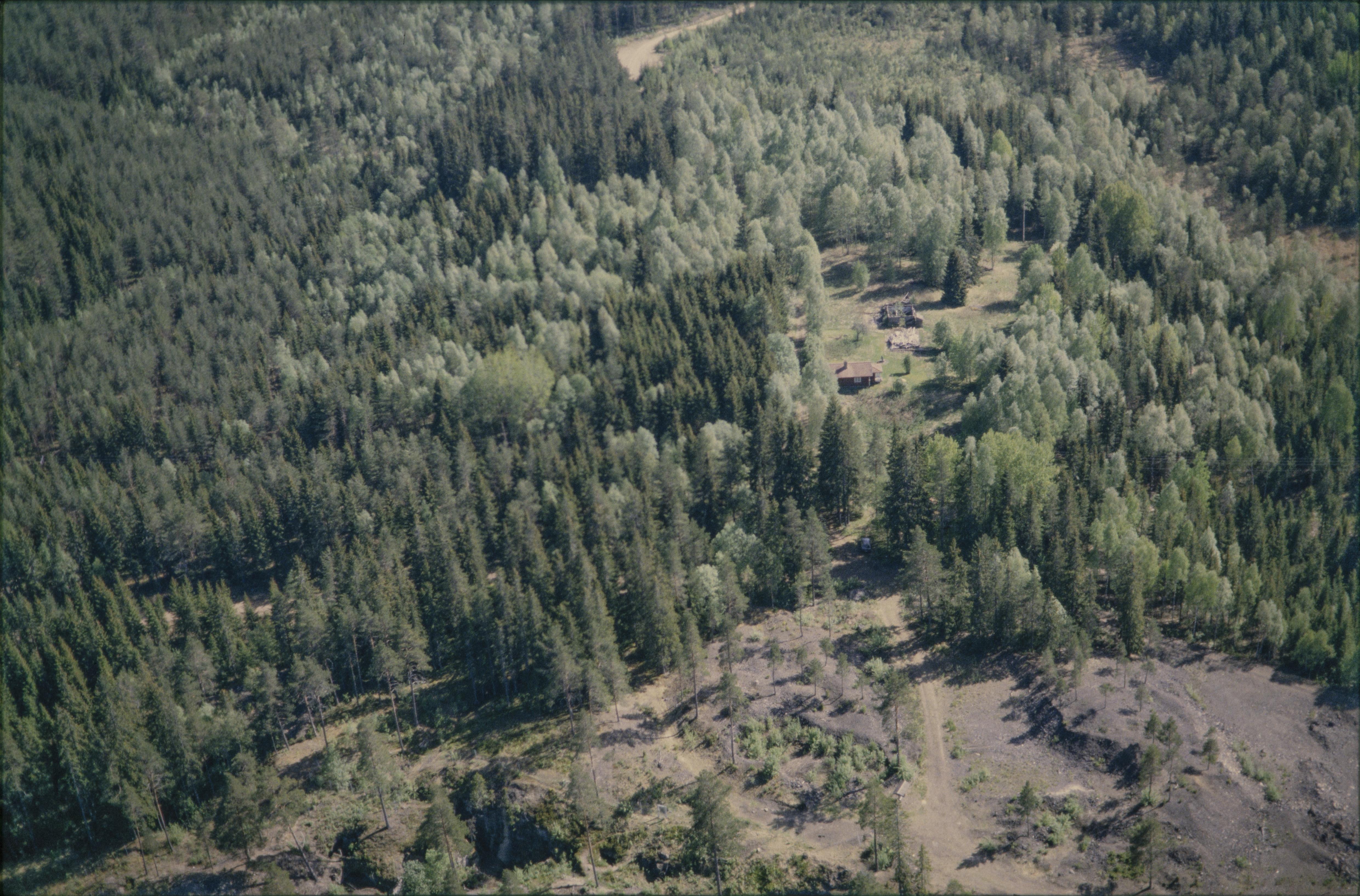 Beskrivning: Sydöstra delen av området Silvergruvan i Svartälvenss dalgång. I bildens nedre del gruvområde RAÄnr Hällefors 90:1. Till vänster över bildens mitt torpet Gladbacken. Bilden är tagen mot (väderstreck): S