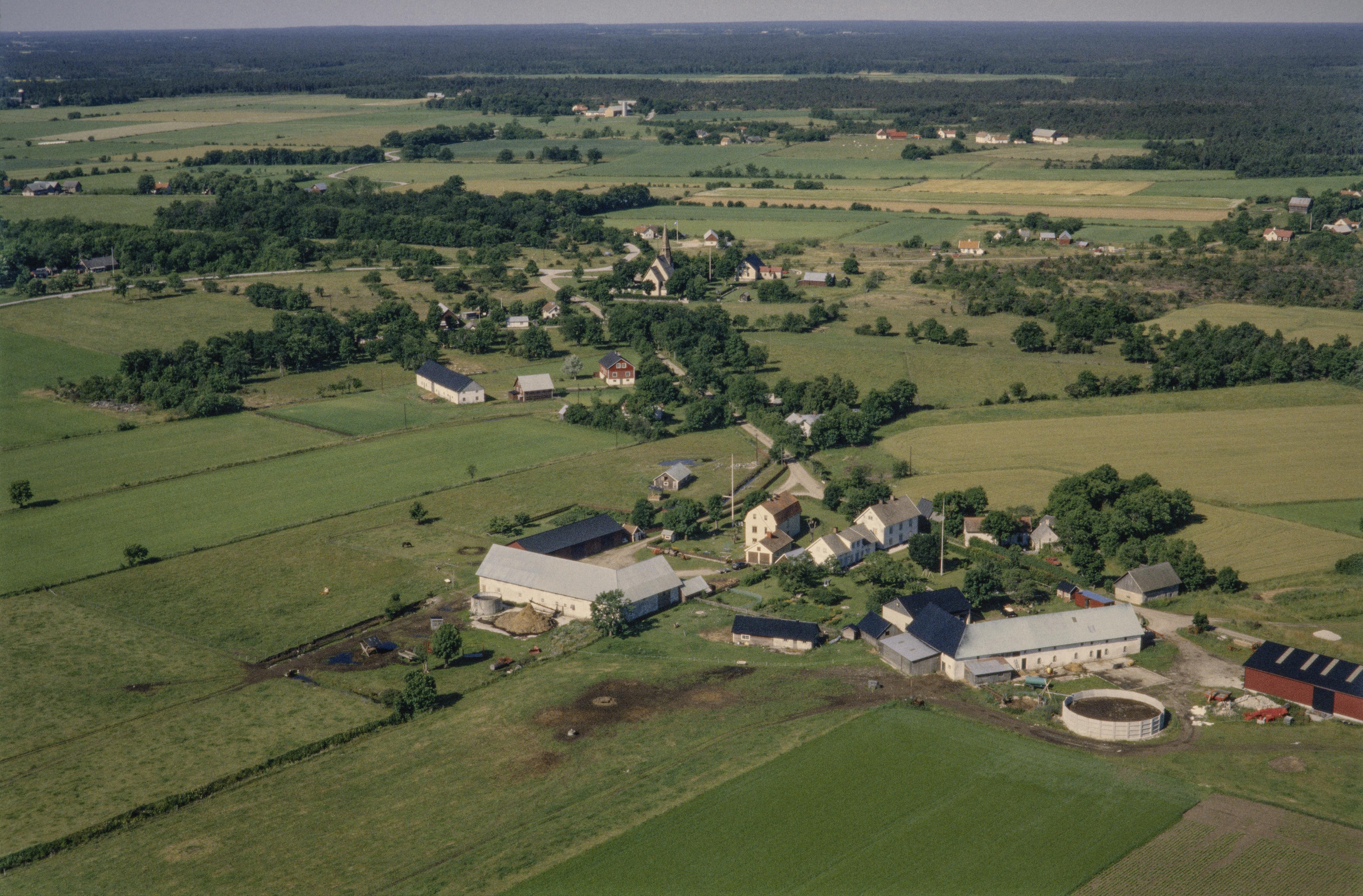 Beskrivning: Bringsarve gård i bildens nedre del. Vid gården hägnad RAÄnr Ardre 88:1. I bildens övre del Ardre kyrkby. Ardre kyrka över bildens mitt. Bilden är tagen mot (väderstreck): VSV