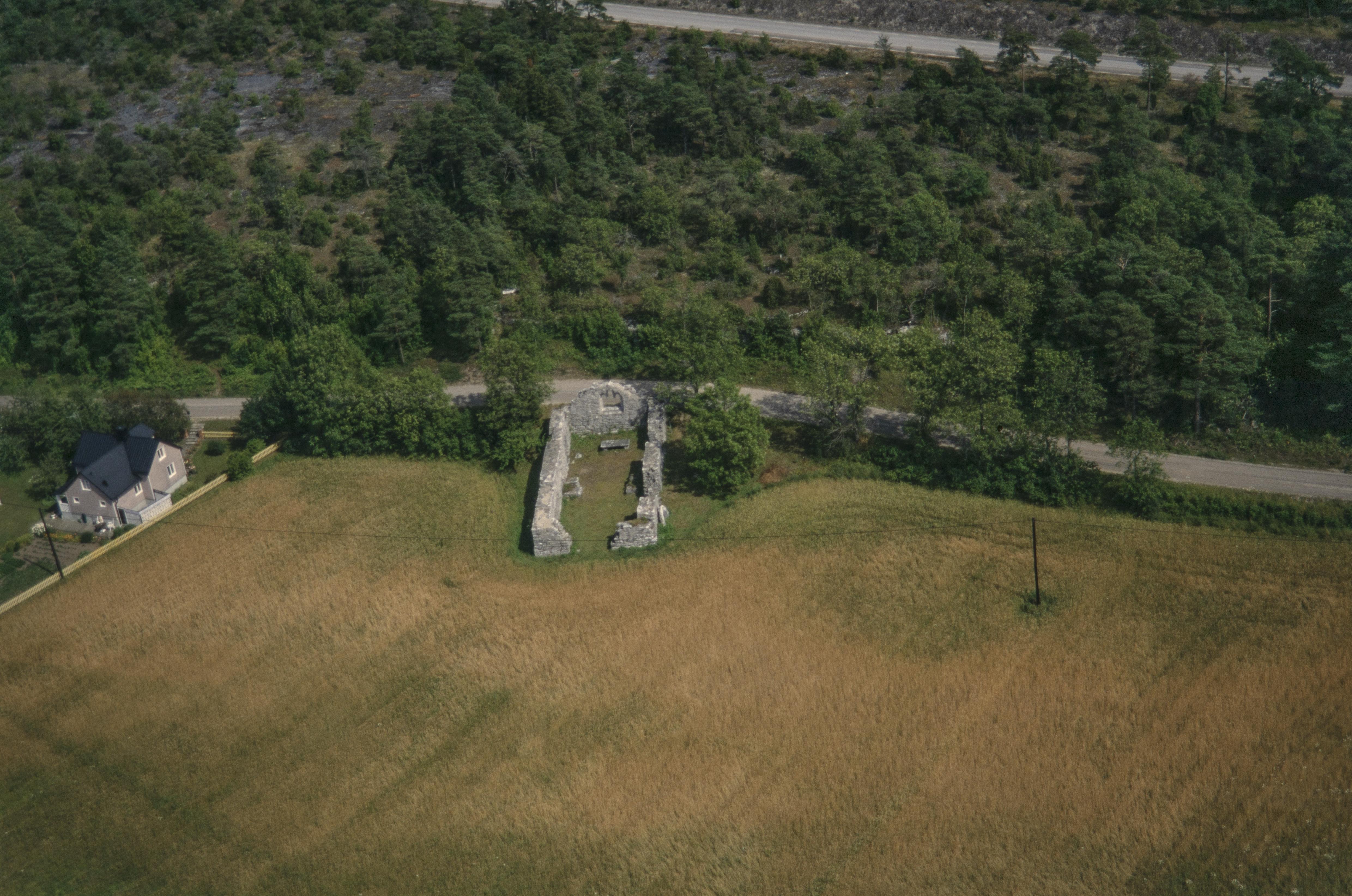 Beskrivning: Vid bildens mitt ruinen Ardre ödekyrka / Gunfiauns kapell RAÄnr Ardre 35:1. Bilden är tagen mot (väderstreck): Ö