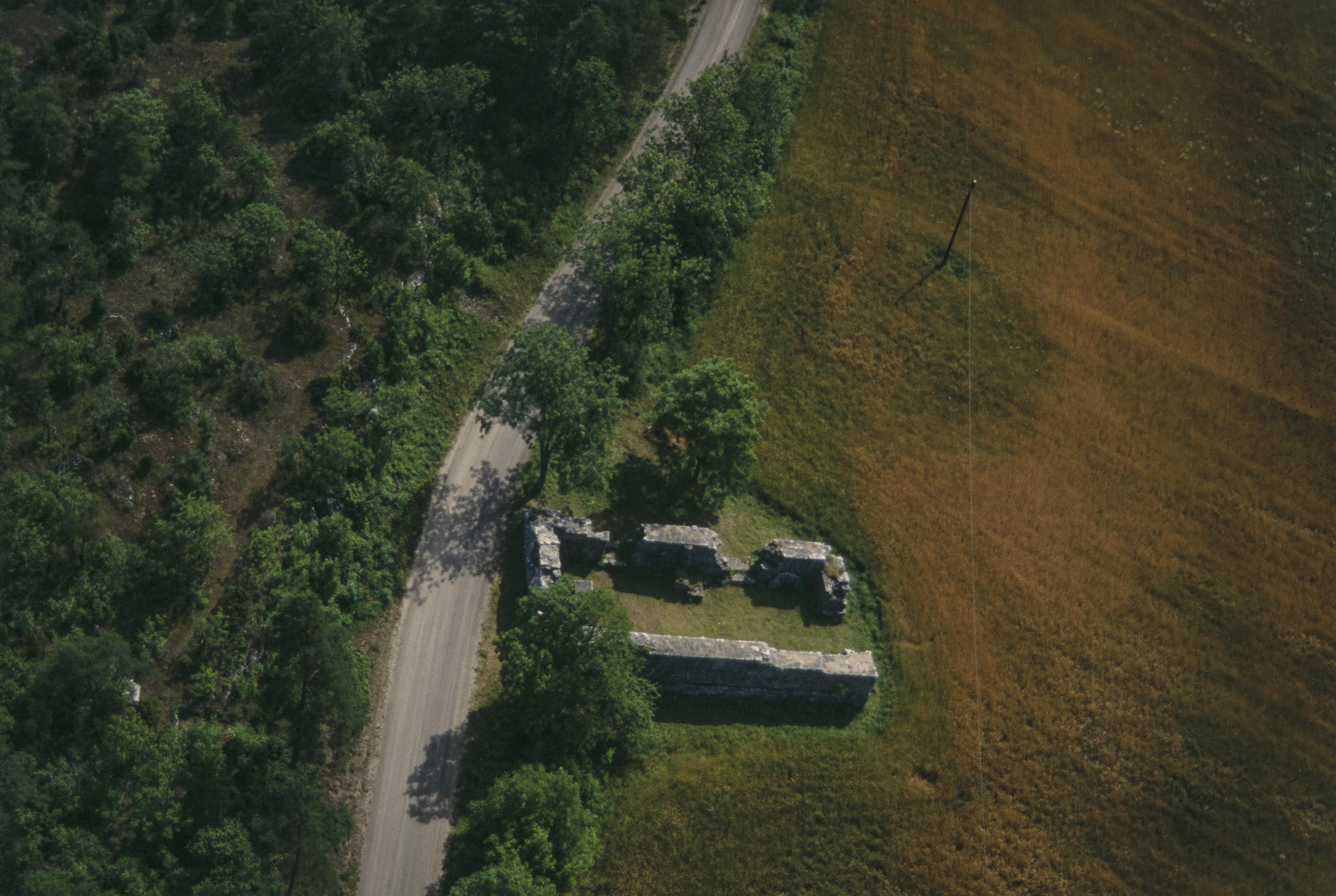 Beskrivning: Ruinen Ardre ödekyrka / Gunfiauns kapell RAÄnr Ardre 35:1. Bilden är tagen mot (väderstreck): S