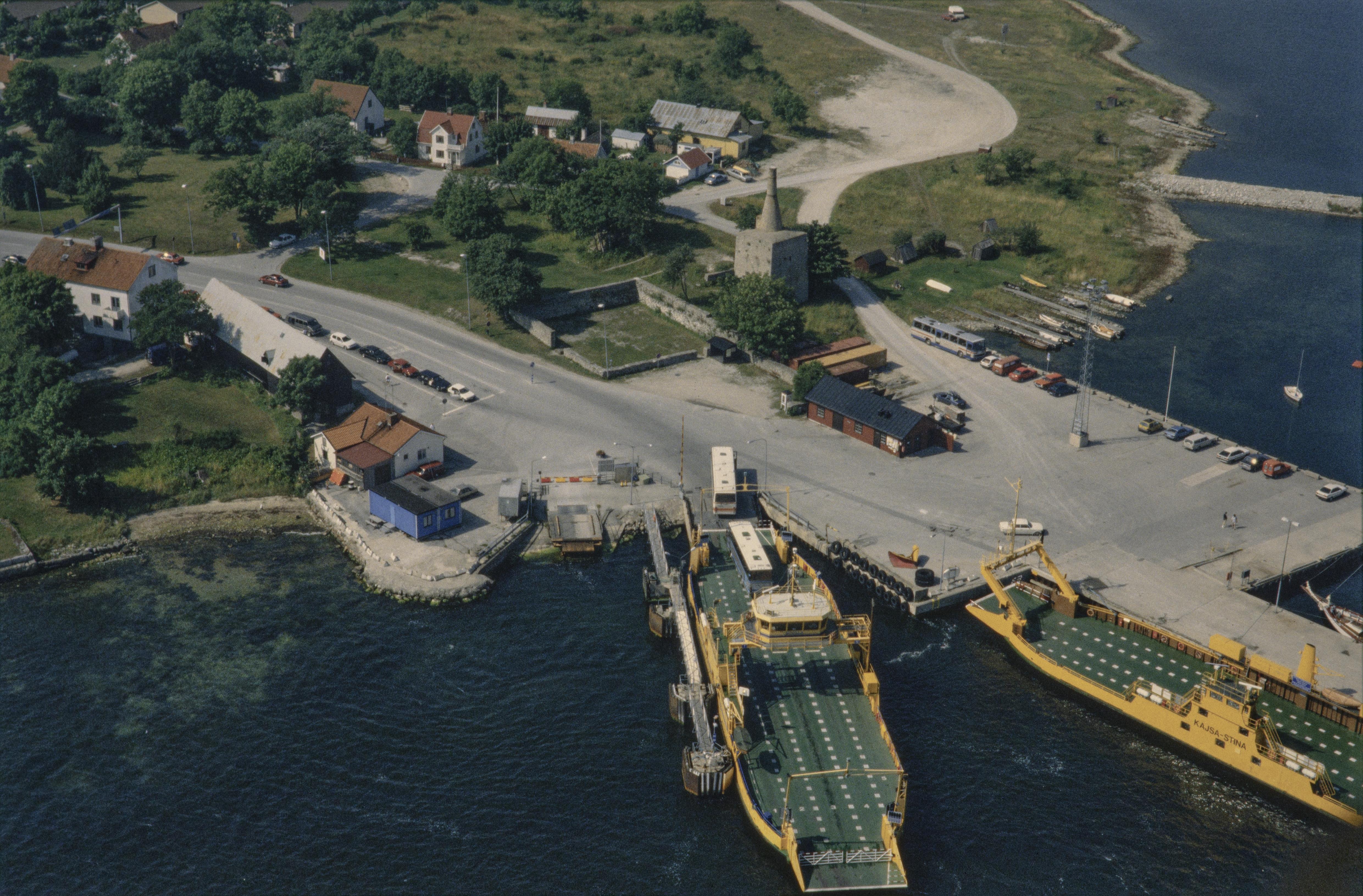 Beskrivning: Anmärkning (övrig): Info: Denna bild fick tidigare inte visas eller spridas utan godkänning från Försvarsstaben (beslut från 1996). Sen några år tillbaka är det Lantmäteriet som gör sådana beslut. På begäran av RAÄ?s avdeling Arkiv och Bibliotek under januari 2020 gjorde Lantmäteriet en ny provning av beslutet från 1996. Resultatet blev att bilden nu kan visas och spridas. Beskrivning: Hamnen i orten Fårösund. Vid bildens mitt kalkugn RAÄnr Bunge 46:1. Bilden är tagen mot (väderstreck): V Fotosyfte: Flygbildsdokumentation