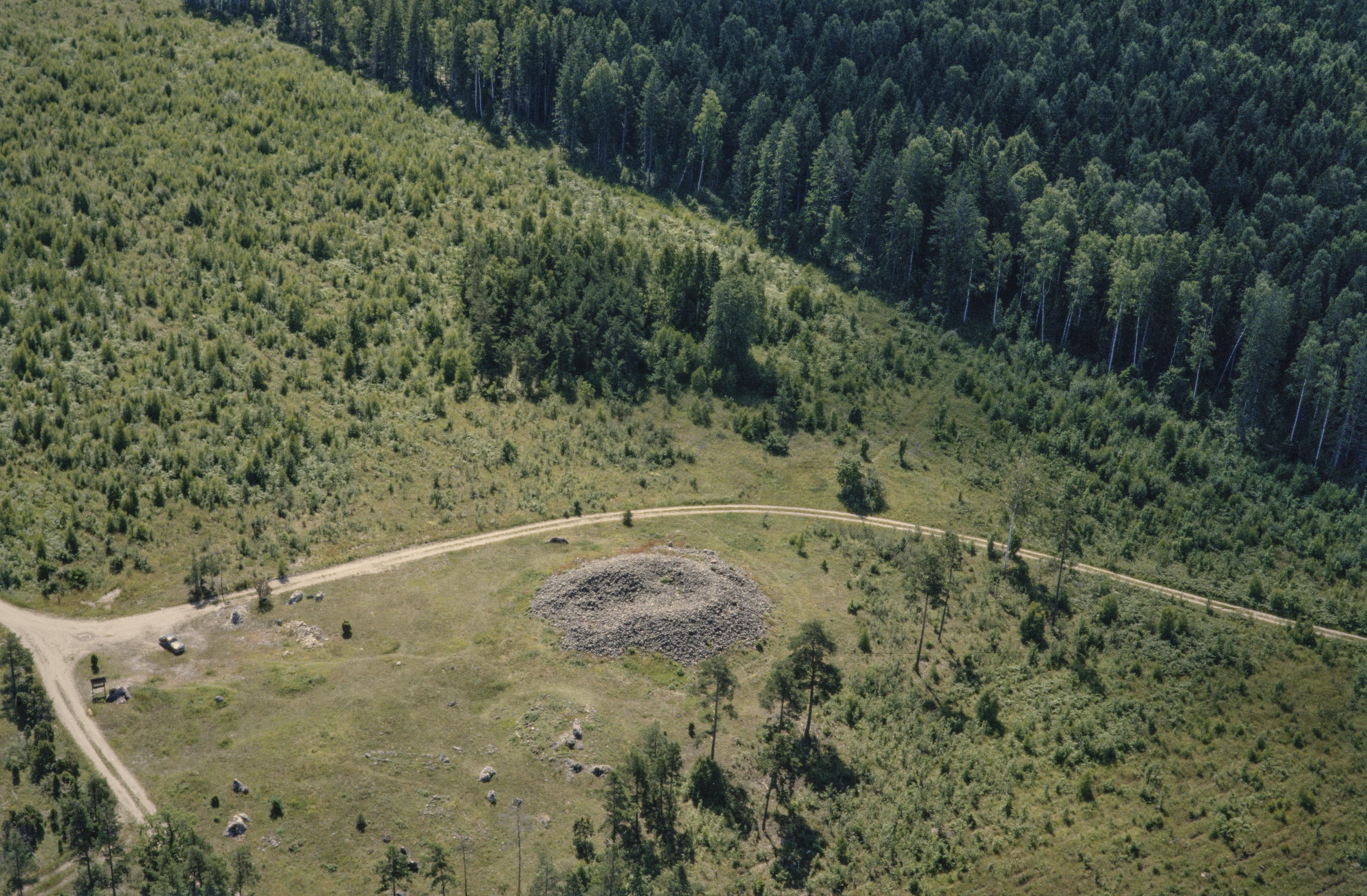 Beskrivning: Skogsområde väster om Åminne by. Under bildens mitt röset Majsterrojr (skrivs även Majster rojr) RAÄnr Gothem 111:1. Bilden är tagen mot (väderstreck): S