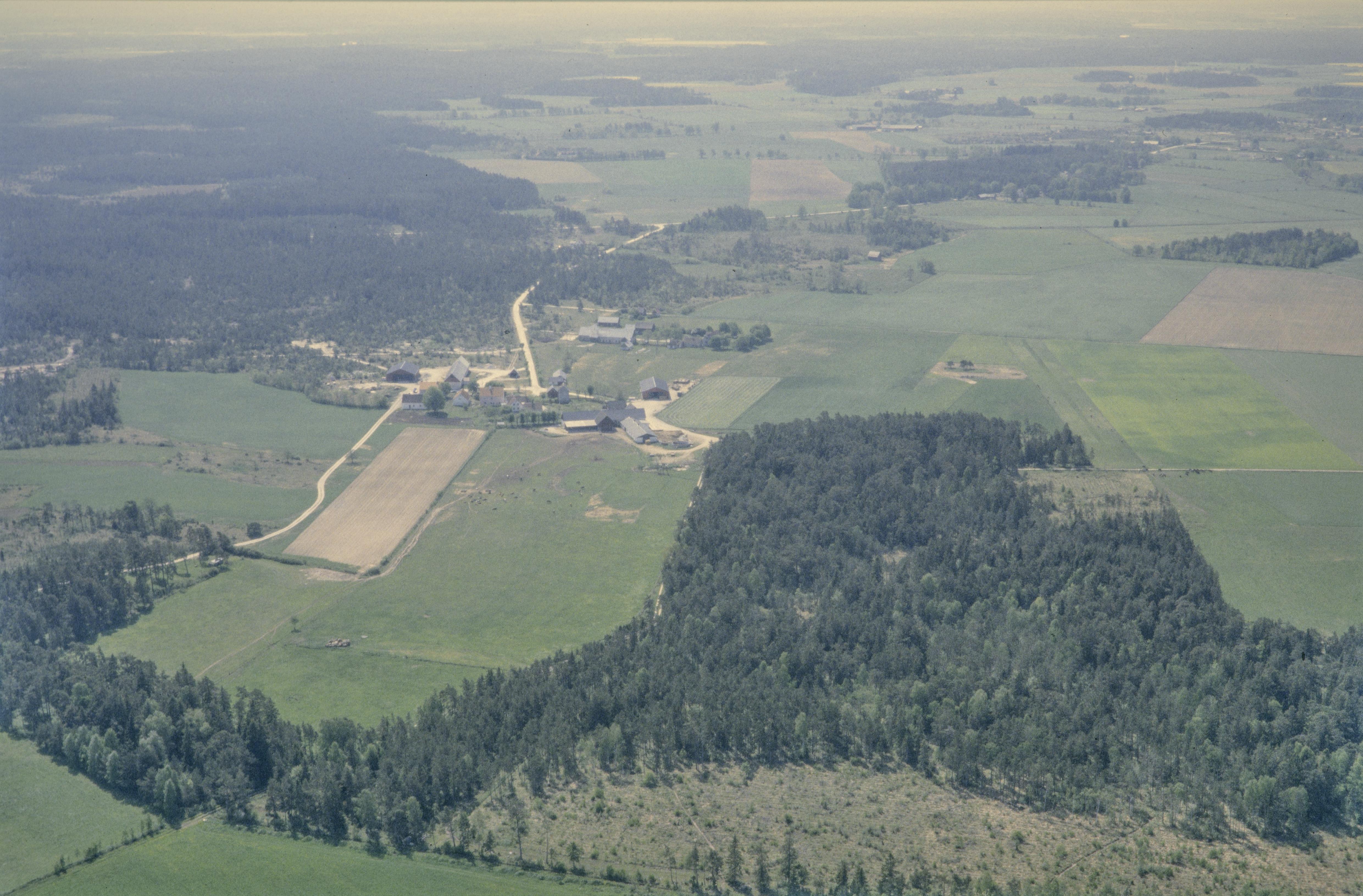Beskrivning: Till vänster om bildens mitt byggnadsminnet Lauks gård. Vid gården husgrund RAÄnr Lokrume 56:2. I skogen uppe till vänster en tjärdal RAÄnr Lokrume 76:1. Bilden är tagen mot (väderstreck): S