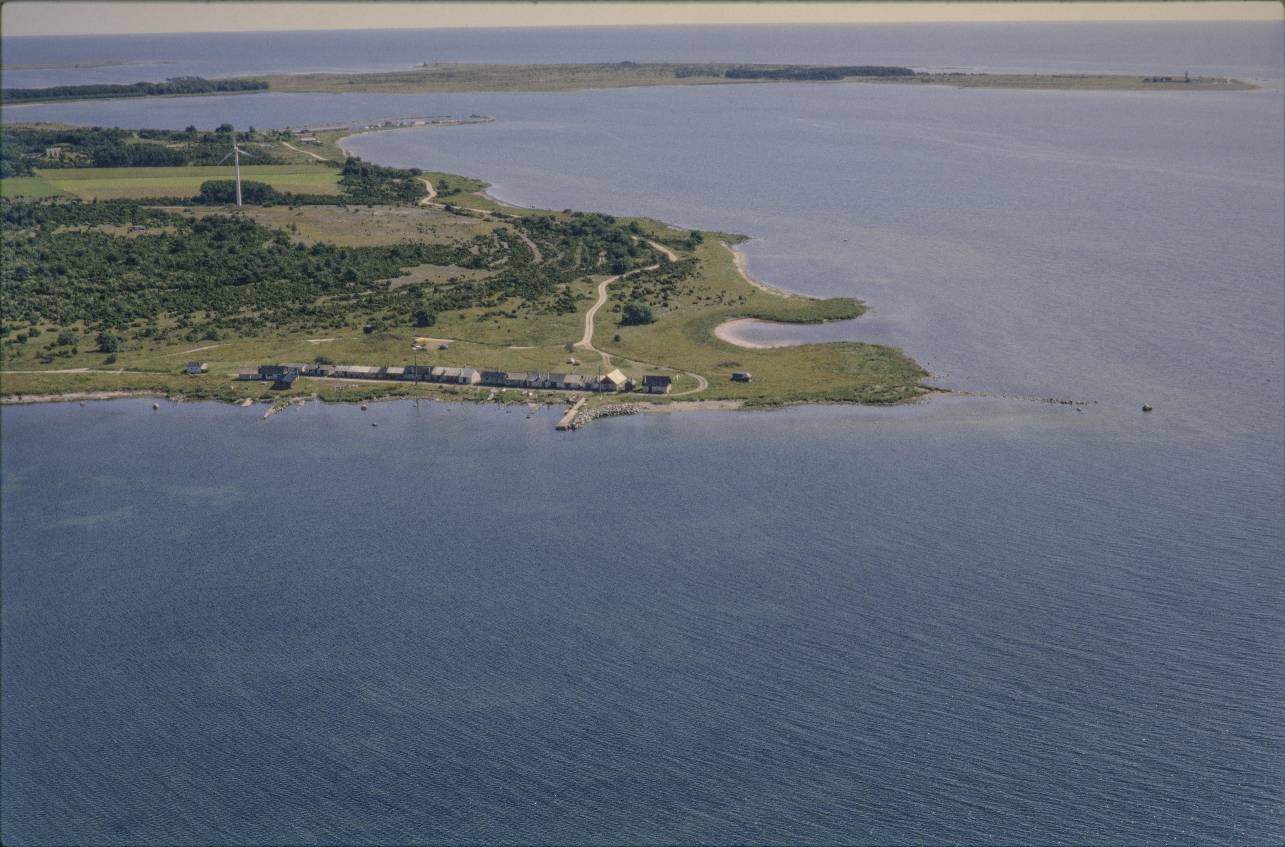 Beskrivning: Fiskeläget Kapelludden med lämningar efter fossil åker och ett kapell (möjligen) RAÄnr När 160:1-2, skans När 178:1 m.fl. Närkholmen (Närsholmen) i bildens övre kant. Bilden är tagen mot (väderstreck): ONO