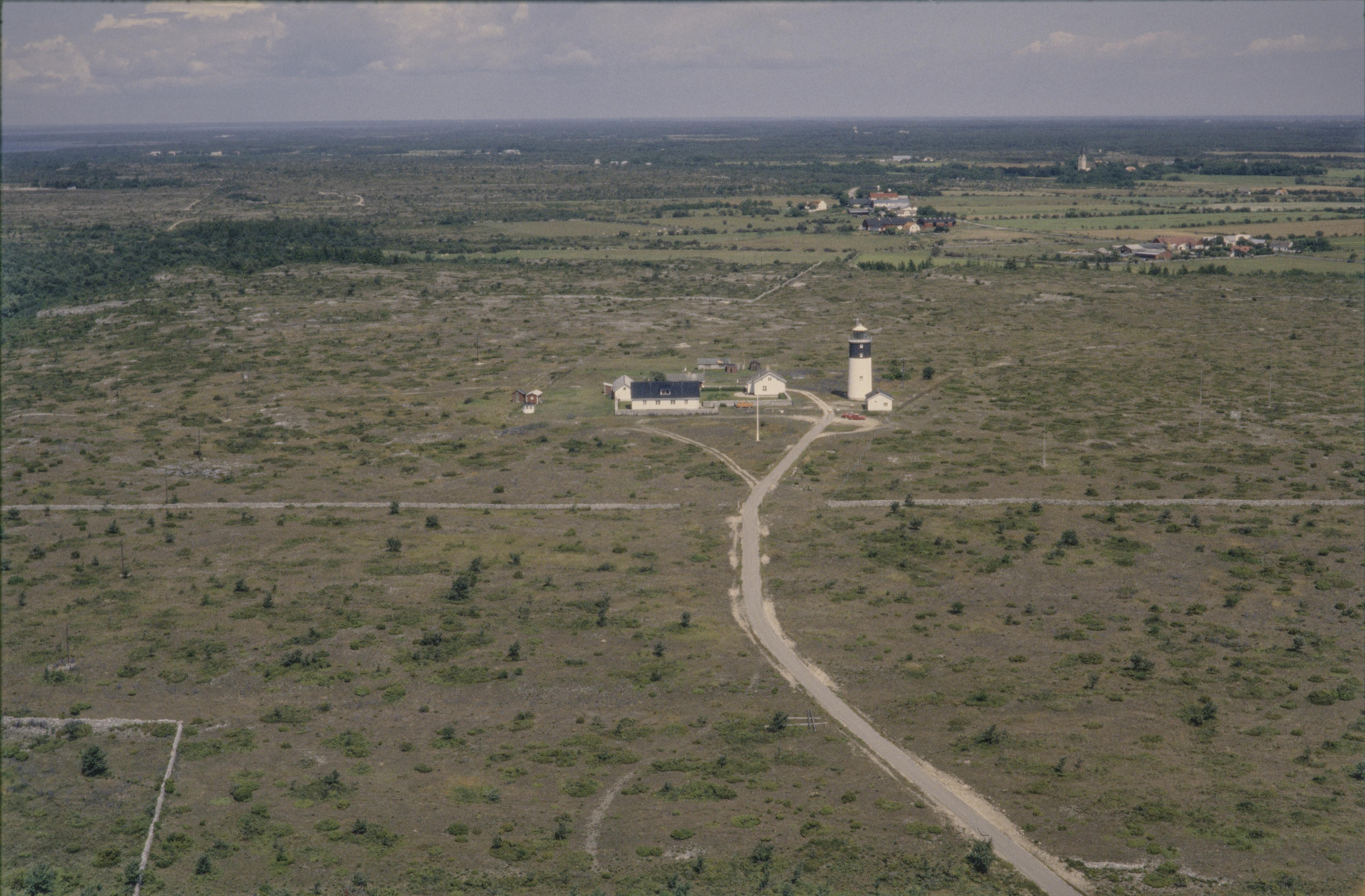 Beskrivning: Hoburgs fyr och fyrplats. Till vänster om fyrplatsen stensättningar RAÄnr Sundre 24:1-4. Uppe till höger Västergårde by mot Sundre kyrka och kyrkby. Bilden är tagen mot (väderstreck): NNO