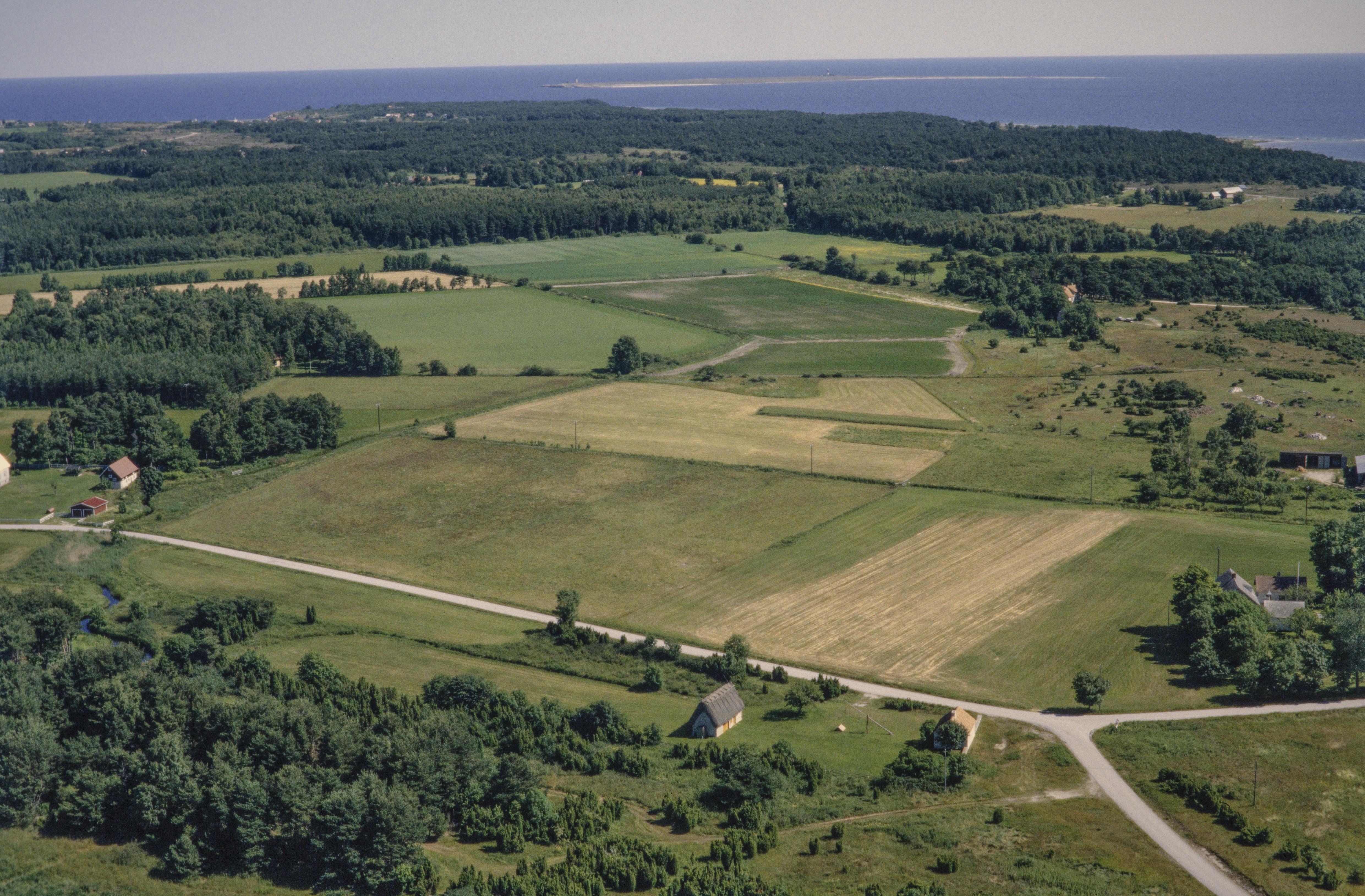 Beskrivning: Sysneudd, norra delen. I bildens nedre del gårdar vid Sandviken i västra delen av Sysne by. Socknet Östergarn i bildens övre del. Bilden är tagen mot (väderstreck): NO