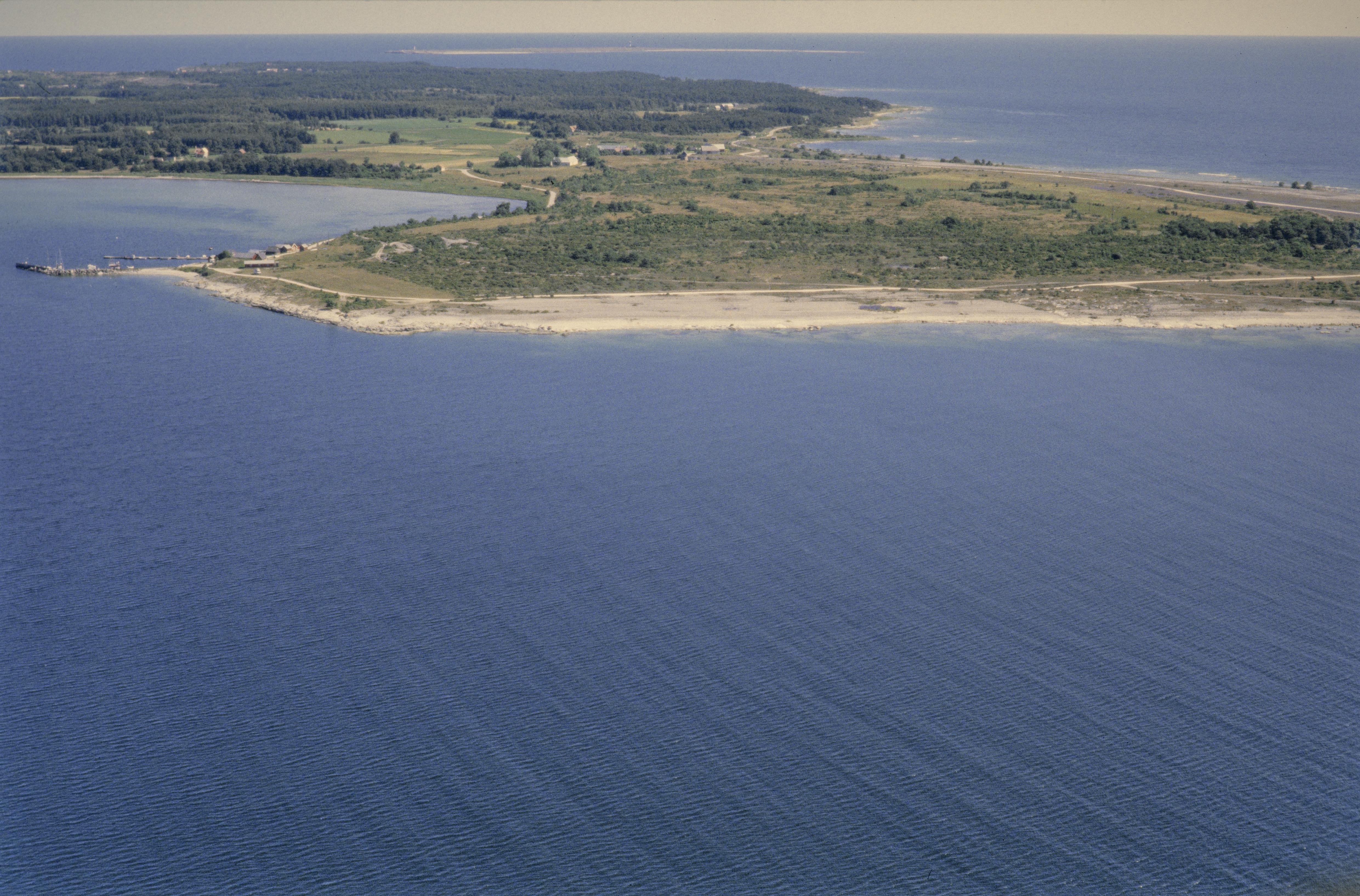 Beskrivning: Sysneudd. Till vänster över bildens mitt Sysne fiskeläge vid Sandviken. På udden gravplats med stensättningar och röse RAÄnr Gammelgarn 57:1-2. Gränsen mot socknet Östergarn i bildens övre kant. Bilden är tagen mot (väderstreck): NNO