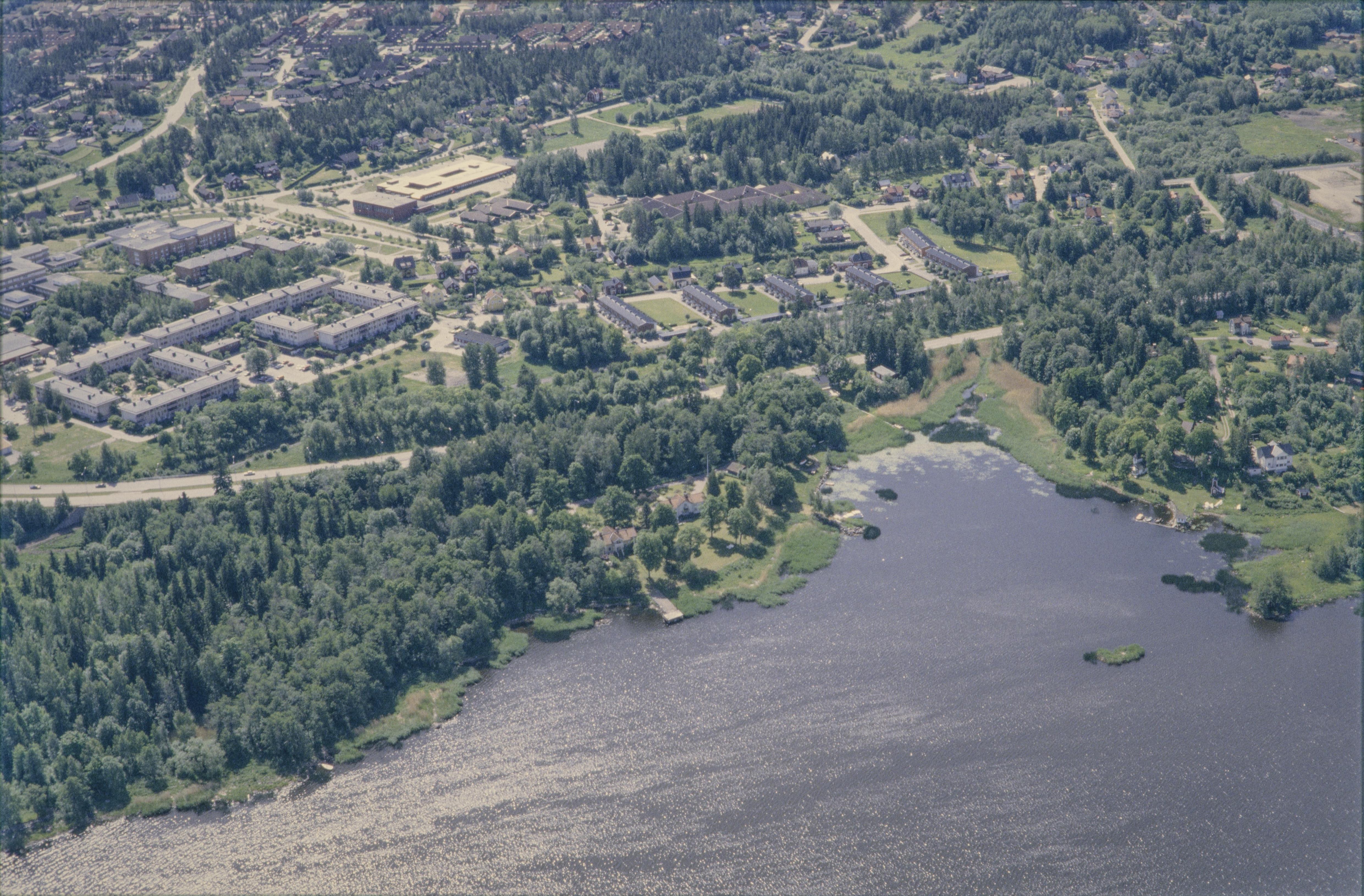 Beskrivning: Gävle tätort vid havsviken Inre fjärden. I bildens mitt områdena Källö och Bomhus i tätortens östra del. Vid stranden till vänster fäbodslämning RAÄnr Gävle 209:1. Vid stranden till vänster fäbodslämning RAÄnr Gävle 209:1. Bilden är tagen mot (väderstreck): S