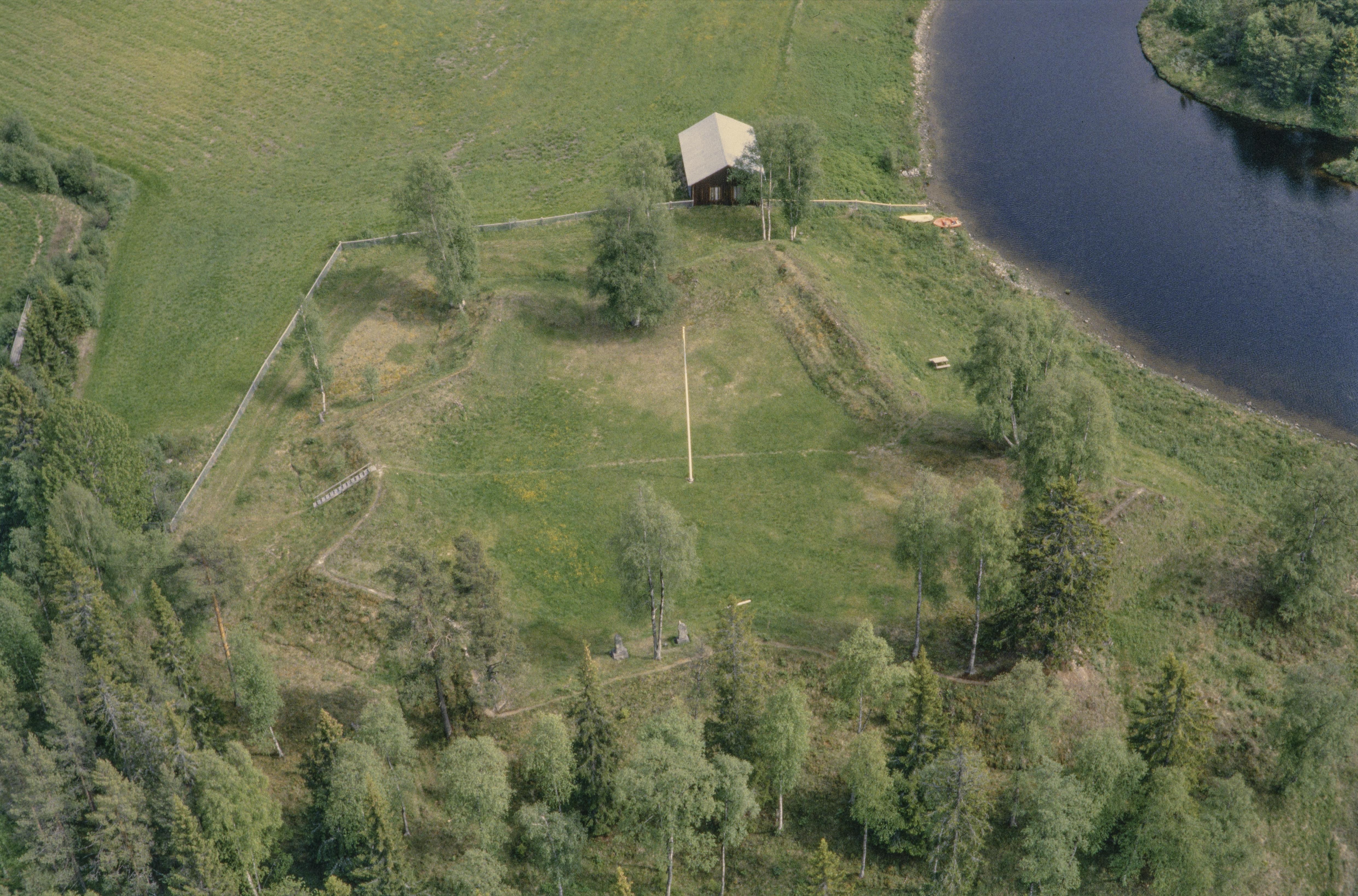 Beskrivning: Älven Ljusnan nordväst i Långå by. Långå skans med minnesmärke RAÄnr Hede 6:1-3. Bilden är tagen mot (väderstreck): OSO