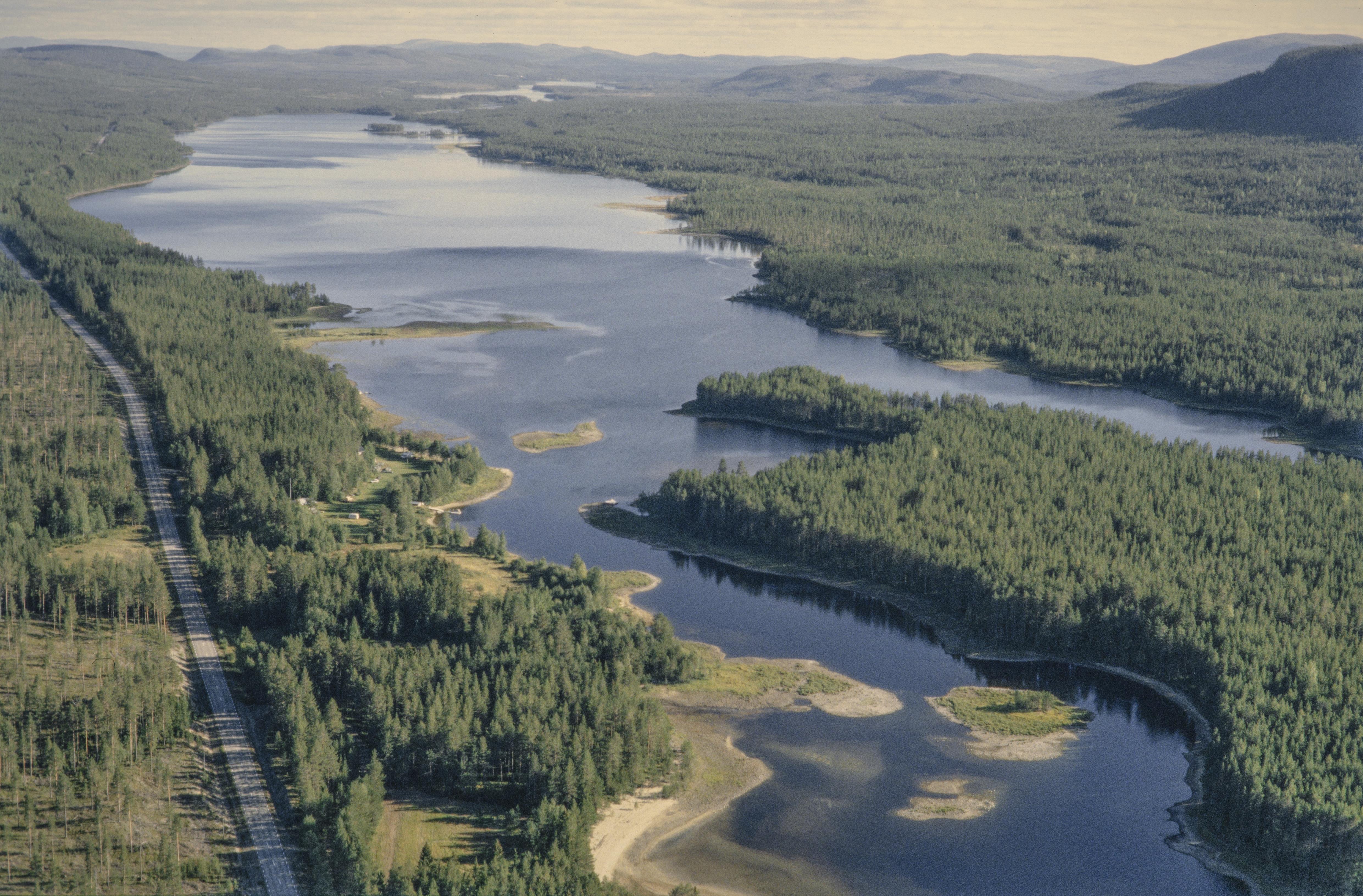 Beskrivning: Älven Ljusnan och sjön Orten vid gränsen mellan socknen Linsell och Hede (bildens nedre del). Område med boplatser,. På Ortholmen nere till höger boplats RAÄnr Linsell 10:1. Bilden är tagen mot (väderstreck): SSO