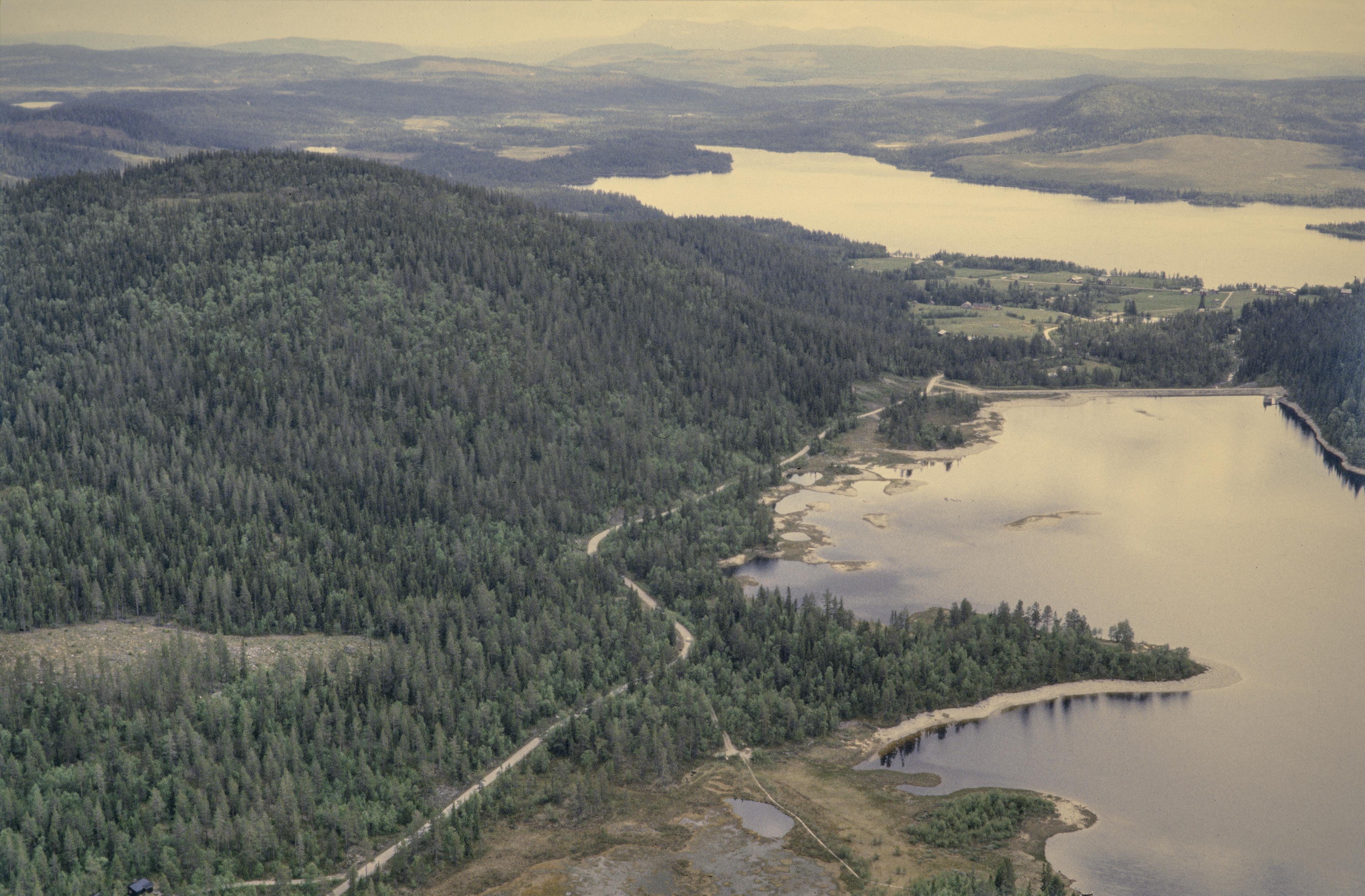 Beskrivning: Beskrivning: Över-Särvsjön med härdar, boplatser m.m. på norra och östra sidan. Grannberget med hällmålning RAÄnr Hede 201:1 uppe till vänster. Under bildens mitt boplats RAÄnr Hede 258:1-4 m.fl. Uppe till höger Grannbergets by vid Neder-Särvsjön. Bilden är tagen mot (väderstreck): S Fotosyfte: Flygbildsdokumentation